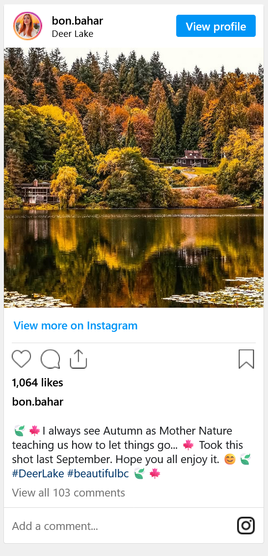 这个列治文最受欢迎的公园之一,也是观赏秋色的好去处,可以跟家人朋友一起漫步在色彩斑斓的树林中。