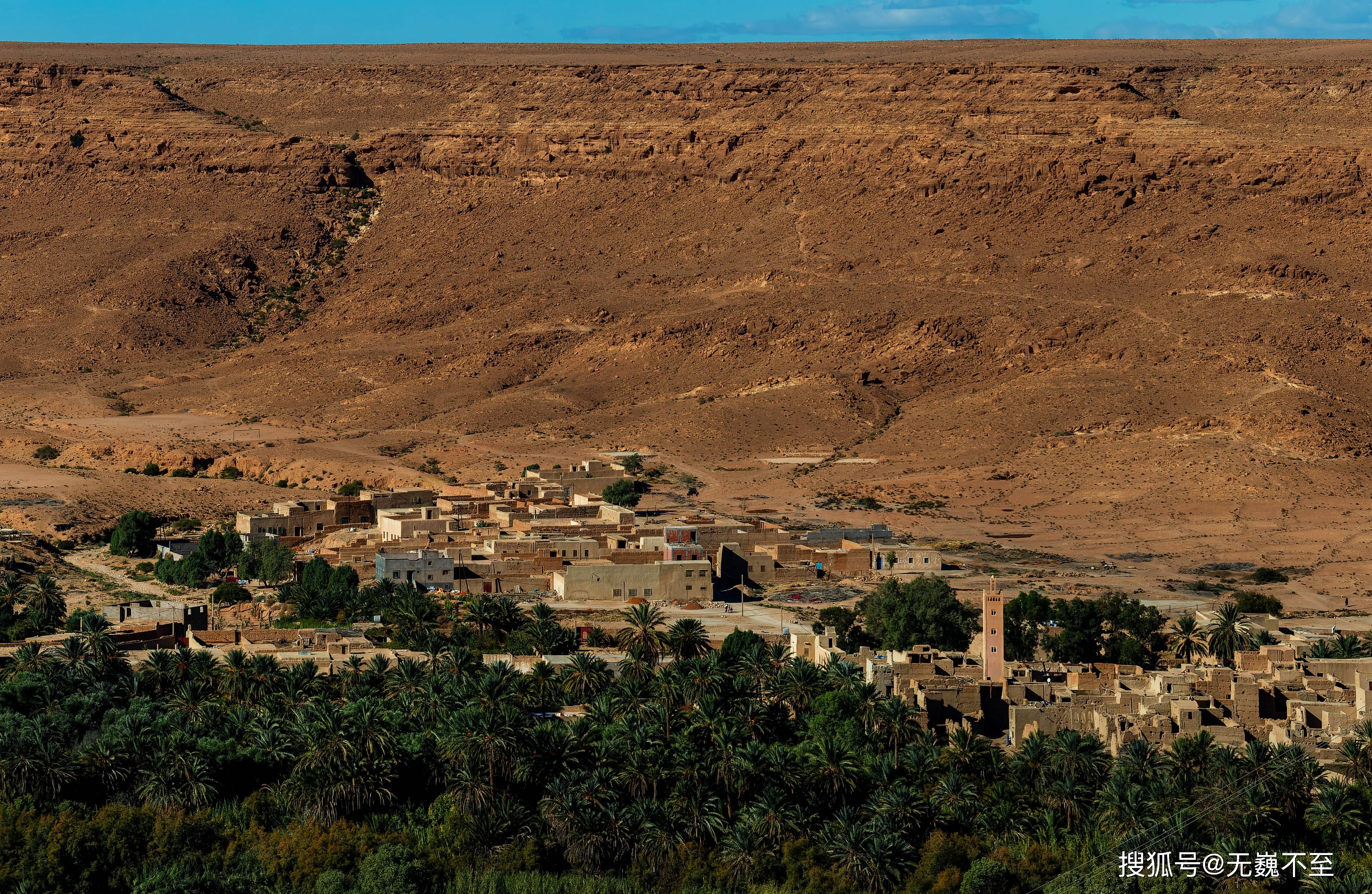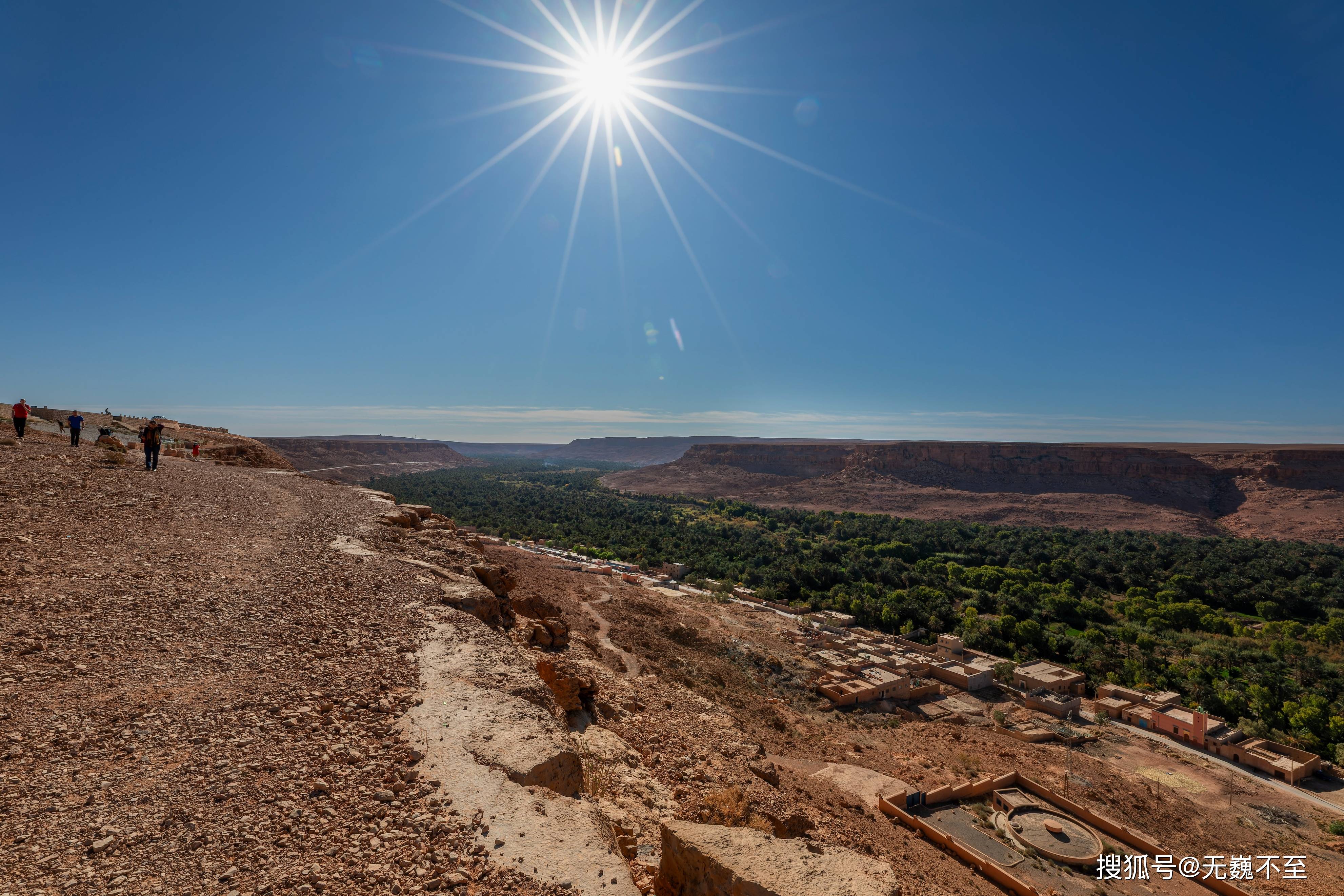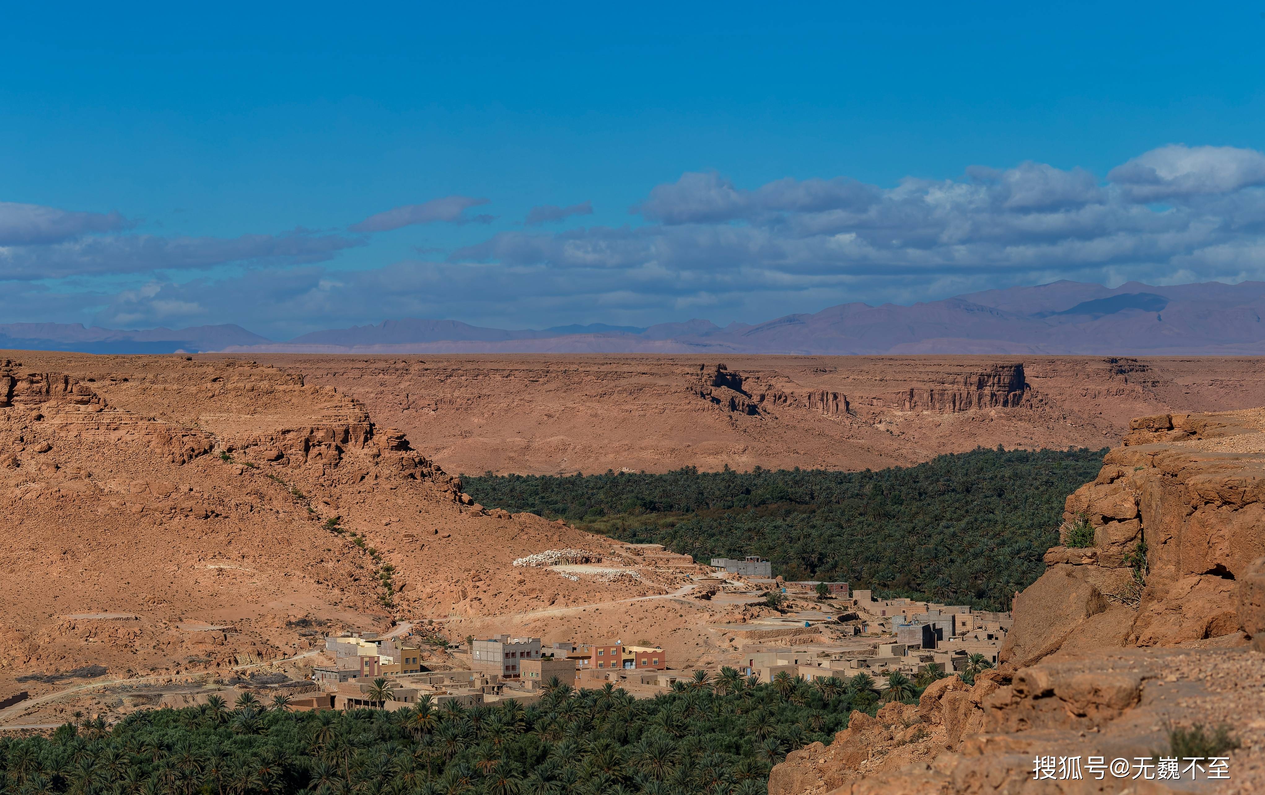 据说这片绿洲是全球最美的九大沙漠绿洲之一,微弱的降水以及谷底孱弱的小河,就这样哺育着数万人口以及绵延几十公里的农田、椰枣林和一个叫Aoufous的小村庄。
