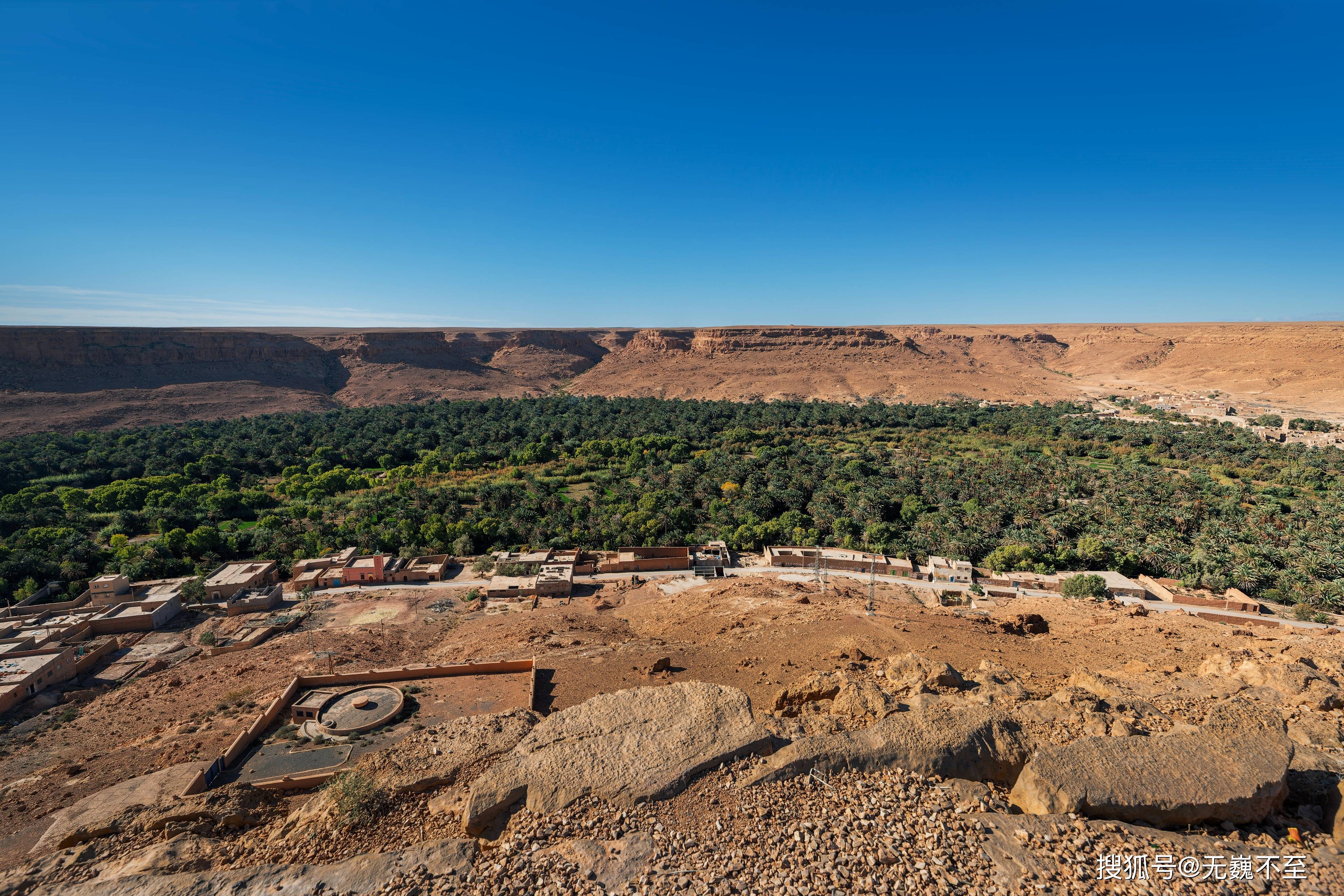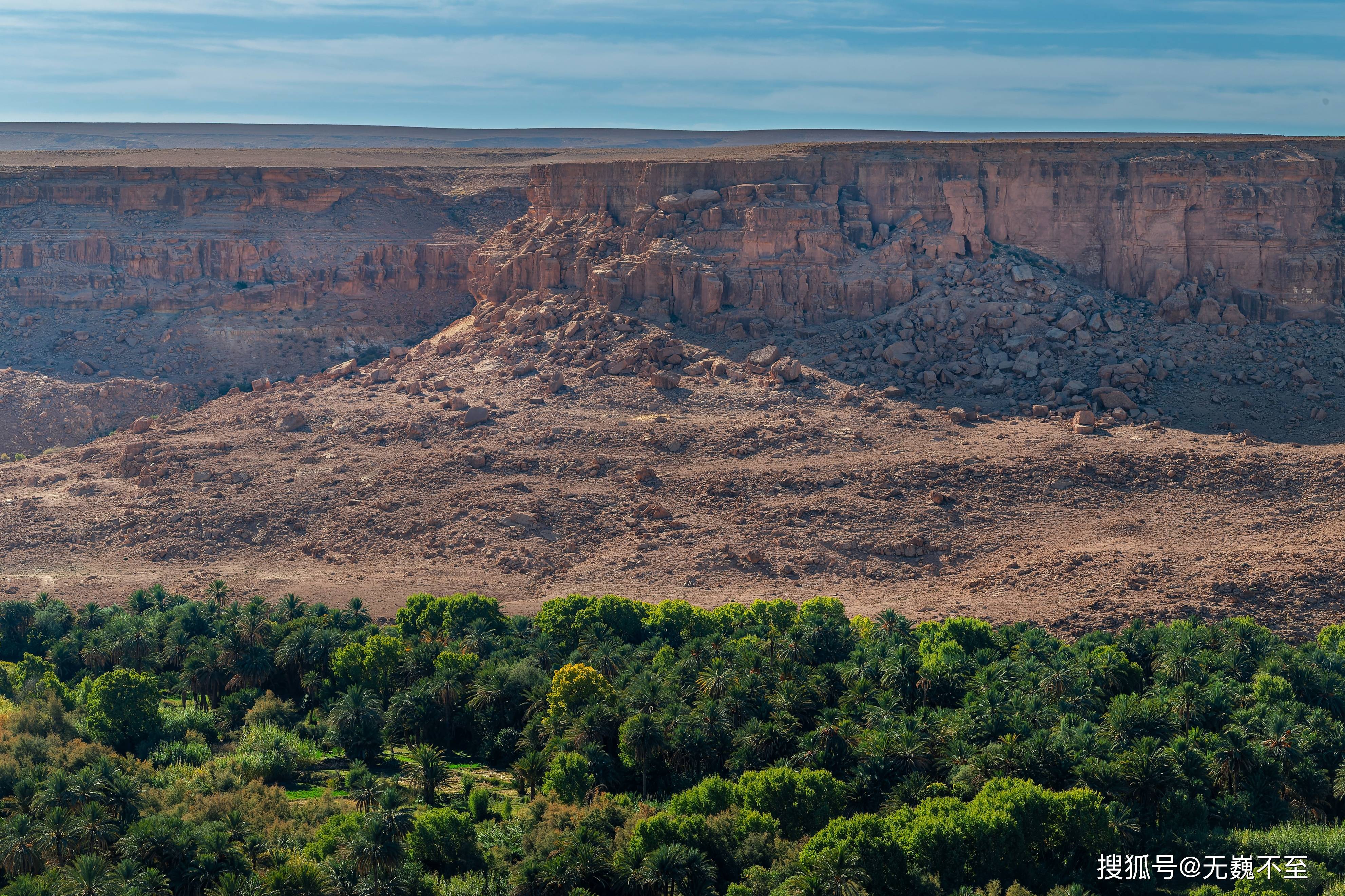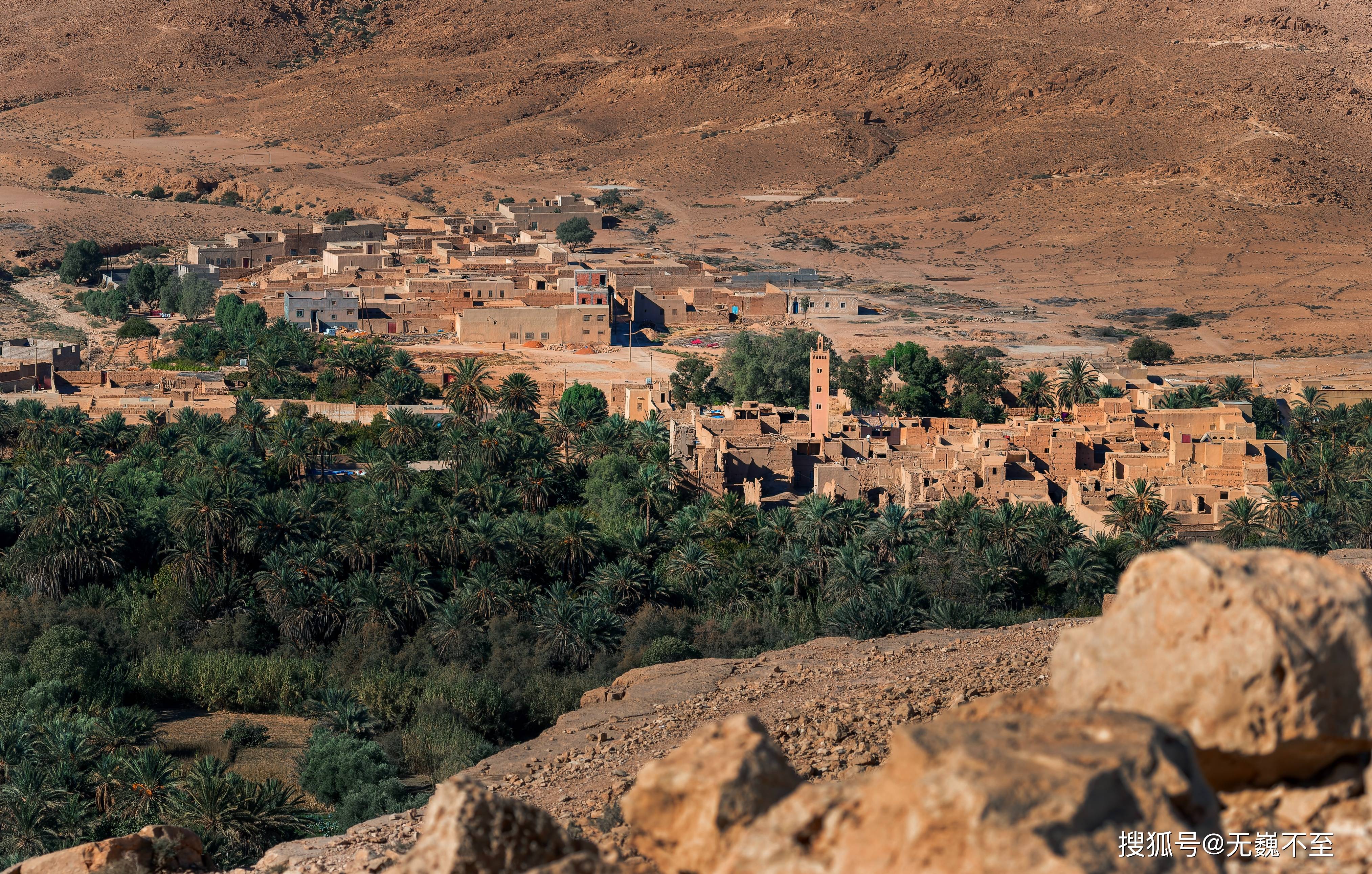 据说这片绿洲是全球最美的九大沙漠绿洲之一,微弱的降水以及谷底孱弱的小河,就这样哺育着数万人口以及绵延几十公里的农田、椰枣林和一个叫Aoufous的小村庄。