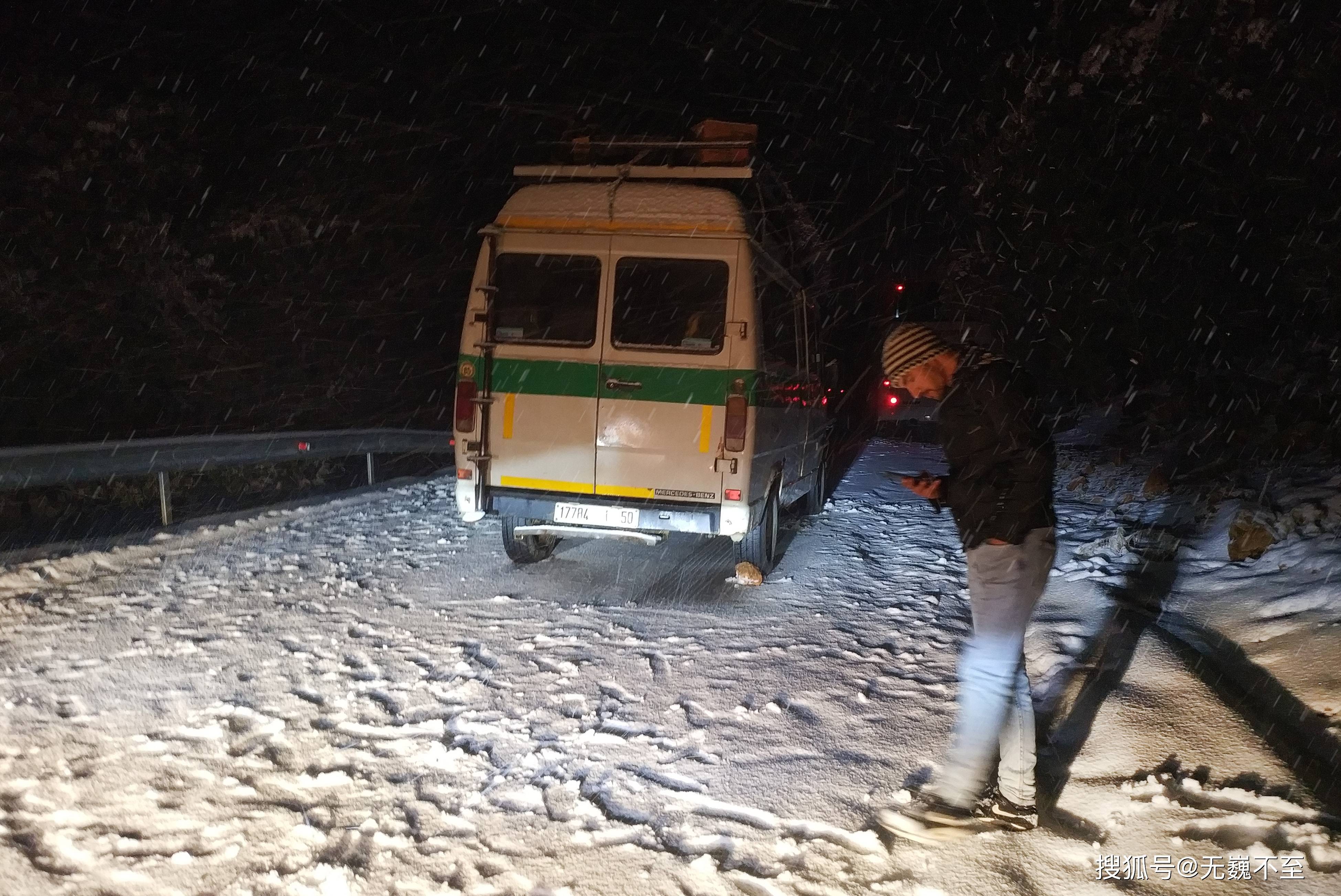 绕过警察,司机打算绕道进入伊夫兰,谁知驶入一条山路后,全车陷入一场更大的困境,没有防滑链的大巴因前车突然熄火被迫刹车,十厘米厚的积雪上加油只是原地打滑不能前进。雪越下越大,可敬可爱的穆罕默德坚持在风雪中寻觅信号拨打电话,三个多小时的焦急呼救和等待,总算盼来铲雪车帮助我们奋勇挣出雪泥冰潭!