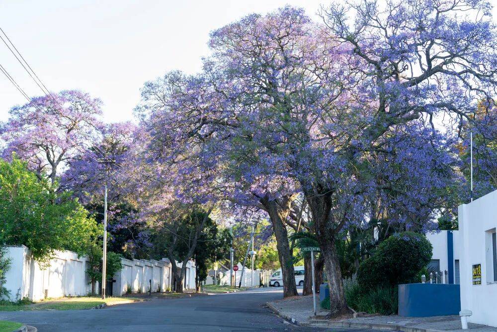 每年的10月中旬至11月上旬,南非约翰内斯堡随处可见盛开的蓝花楹。