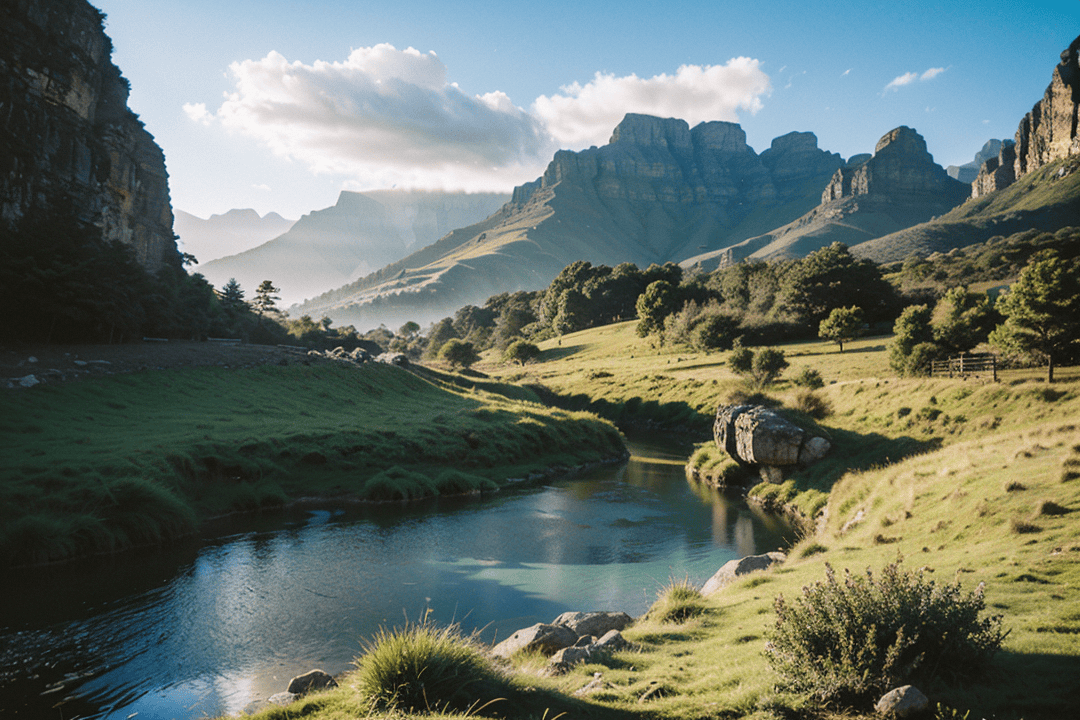 初到德拉肯斯山,最先吸引人的是那如刀削斧劈的峭壁。清晨的阳光从东方洒下,照亮岩石的纹理,每一道裂缝都仿佛在讲述地壳运动的故事。