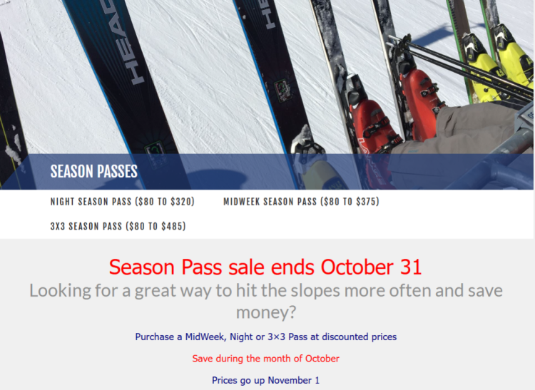 Alpine Season Passes优惠截止到10月31日,如下图所示:
