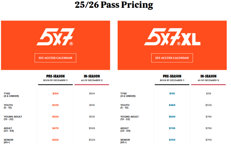 2025/26滑雪季 5x7® Pass优惠截止到12月11日:如下图所示