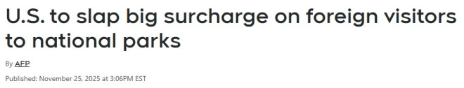 此项针对大多数外国游客的显著提价,不影响美国公民及永久居民,源于美国总统川普今年7月签署的一项行政命令,旨在“为美国家庭保留”国家公园资源。