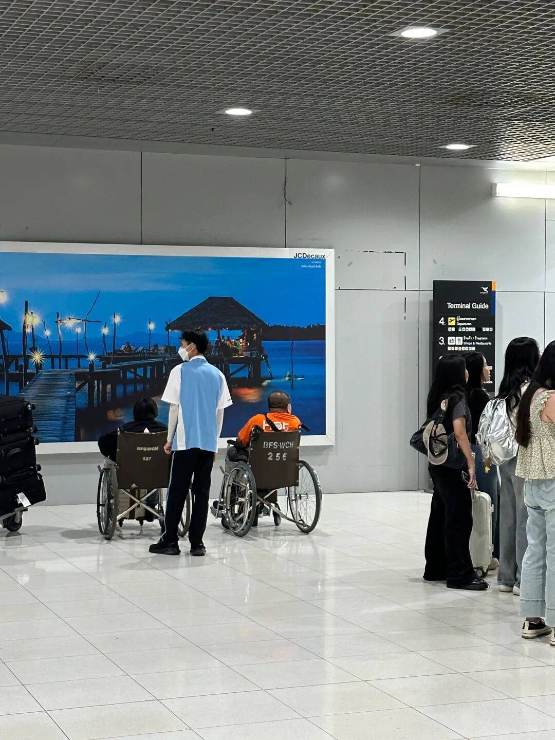 紧接着我就看到了很多残疾人,机场有足够多的残障设施、工作人员,去帮助残障人士。他们推着轮椅,耐心地沟通,将残障人士送到目的地。