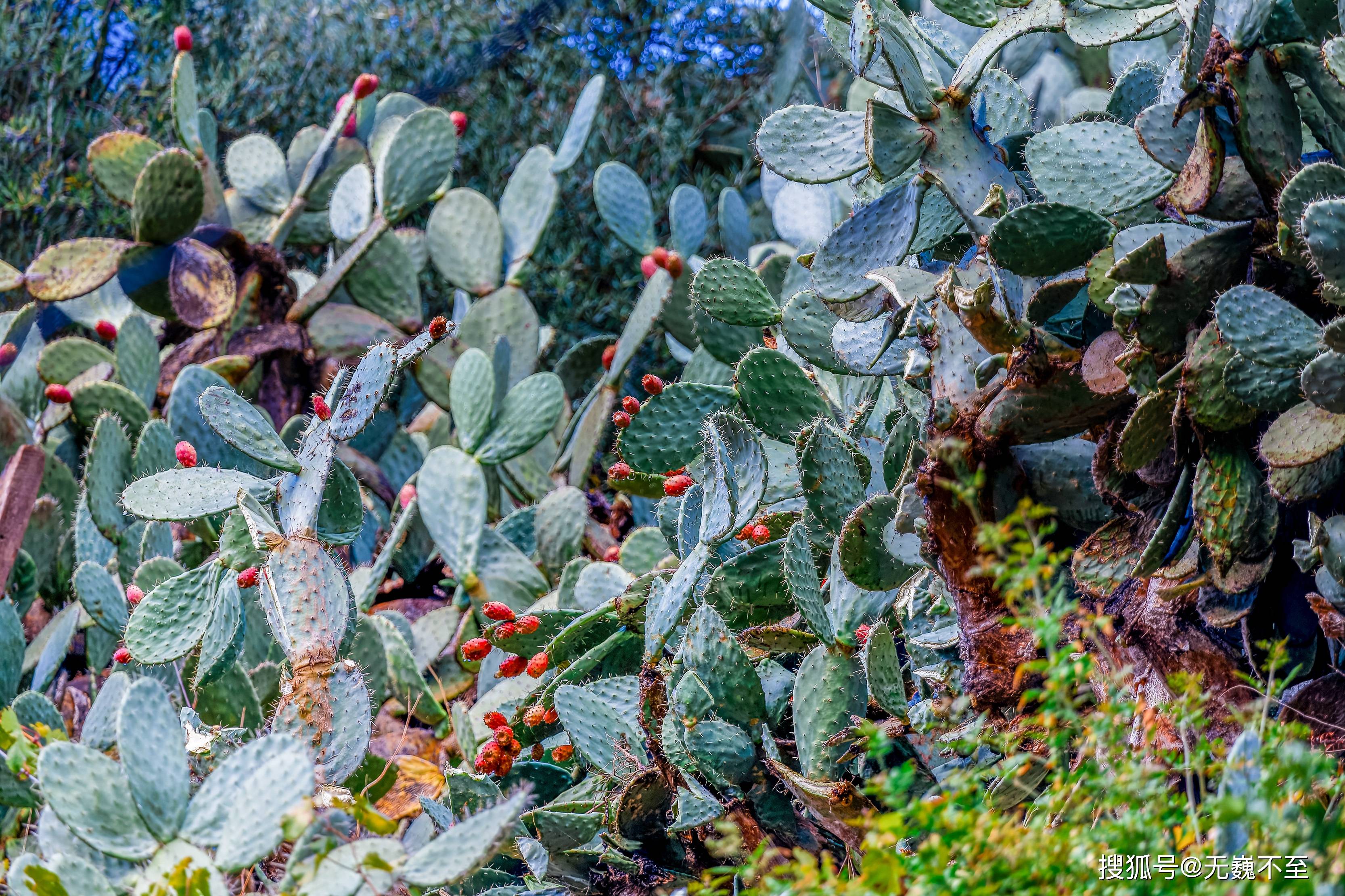 在攀爬的路途中,透过丛生的仙人掌,你便可以以一种全新的视角去打量这座迷幻蓝城,鳞次栉比的房屋除了蓝白,还混有橙红土黄。