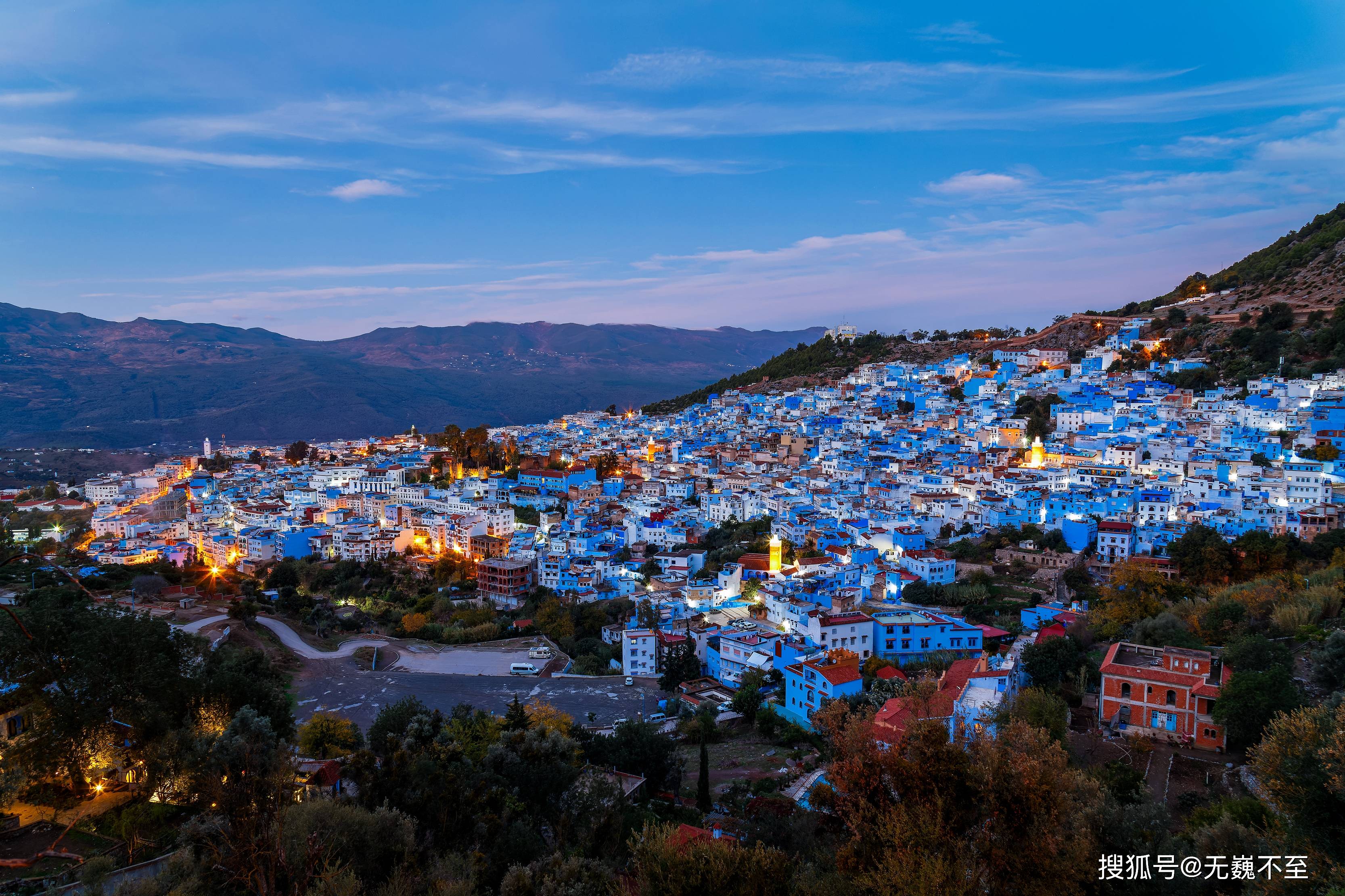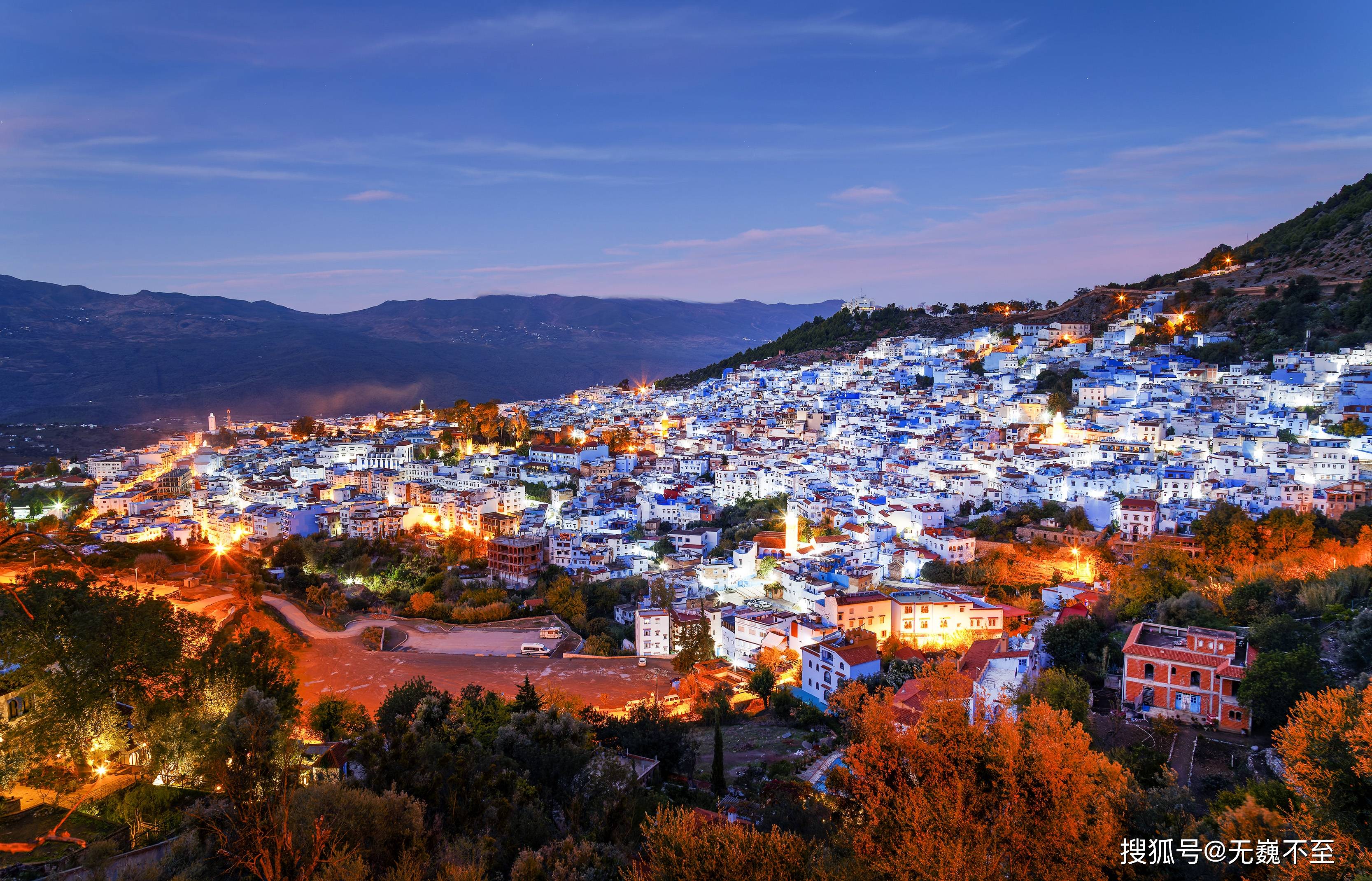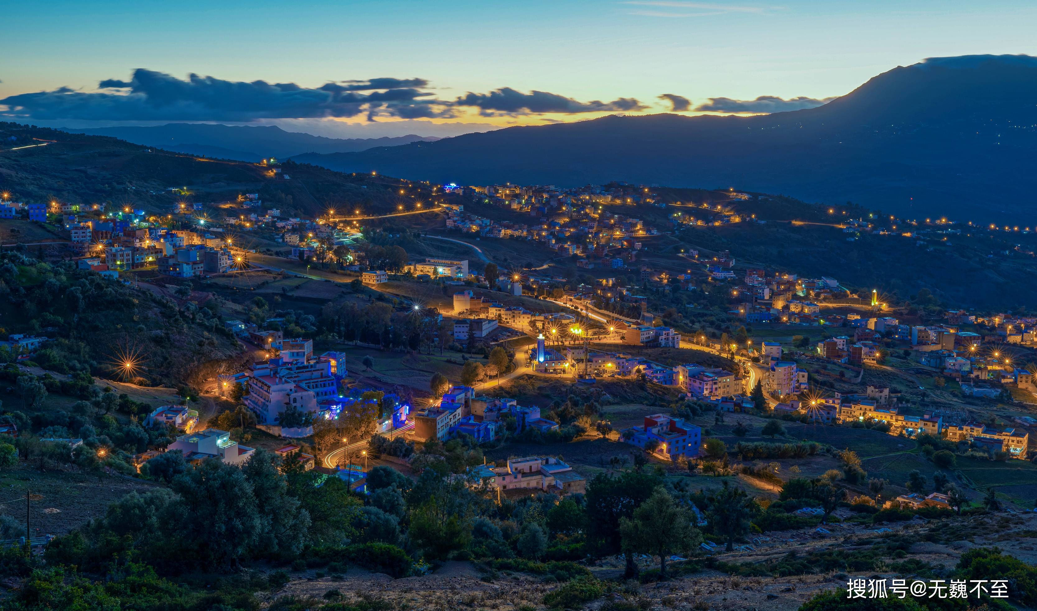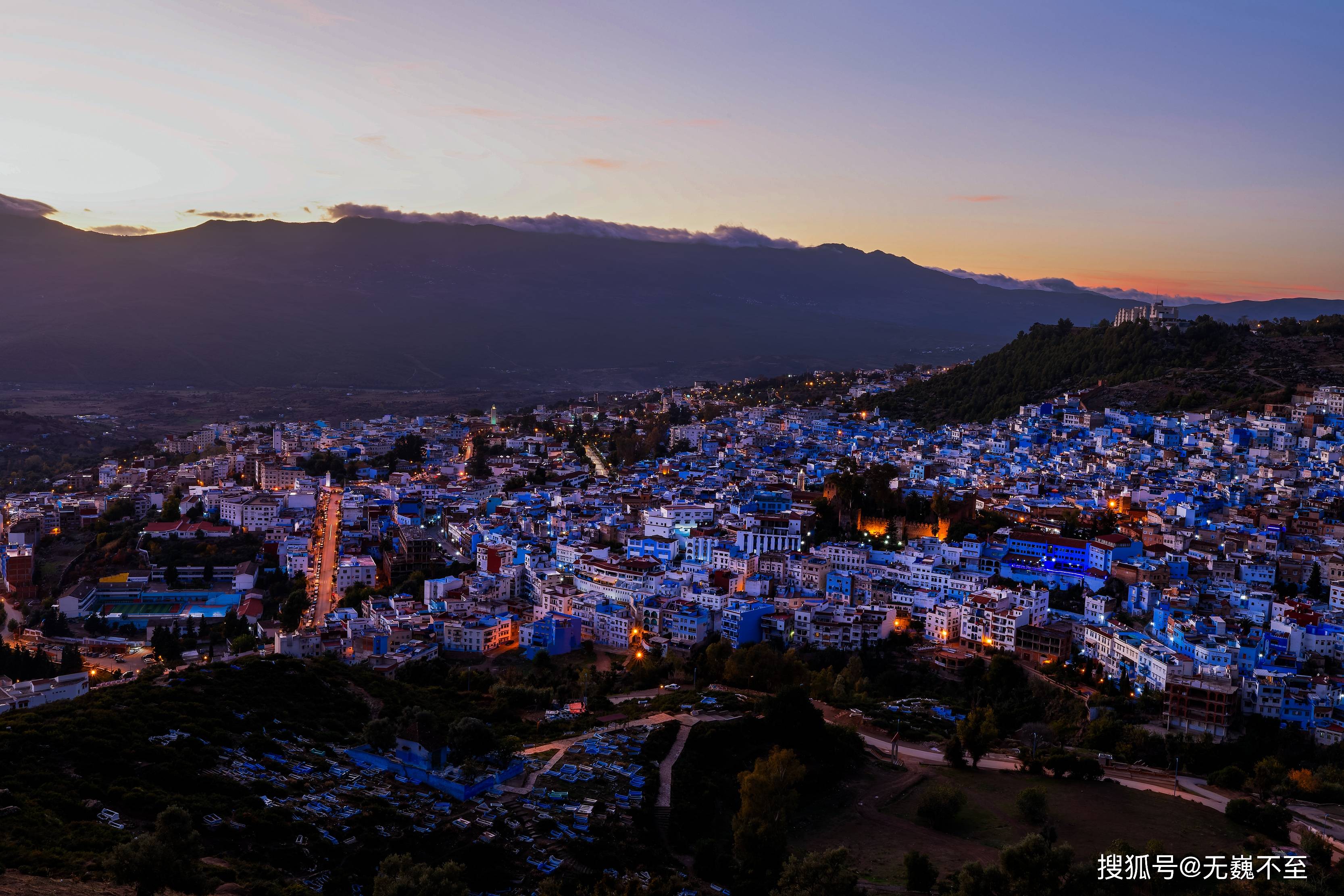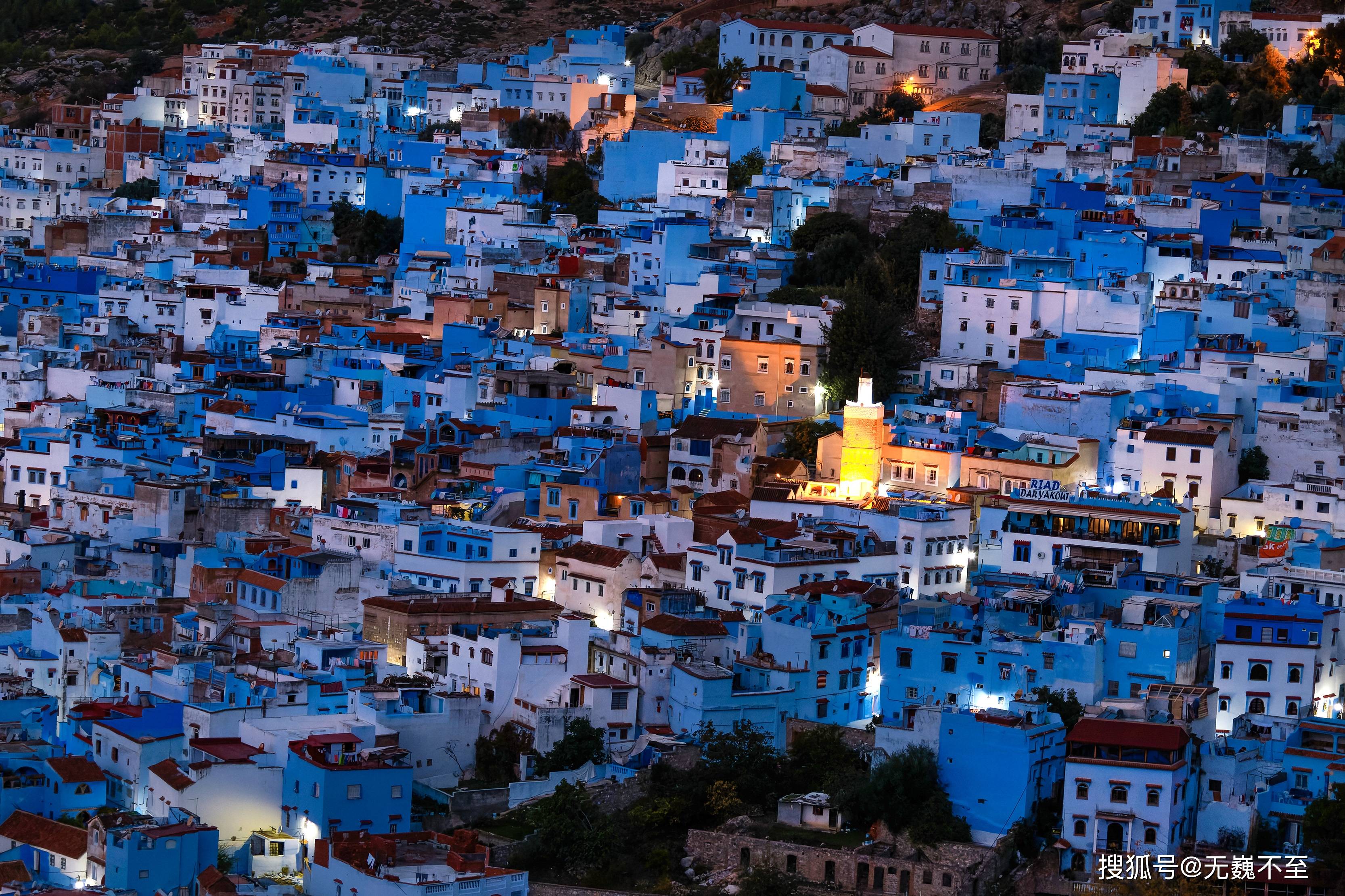 那种暖黄色的、晕染的光,从一扇扇蓝色的窗扉里透出来。蓝与黄,冷与暖,在夜色中交织成一幅幅绝美的图画,每一扇窗,都像是一个独立的、小小的梦境。点点灯火缀满城市的大街小巷,往来车流拖曳着光轨勾勒出道路走向,蓝色的城池在灯光下泛着幽幽光泽,舍夫沙万呈现一派蓝色妖姬的魅惑模样!