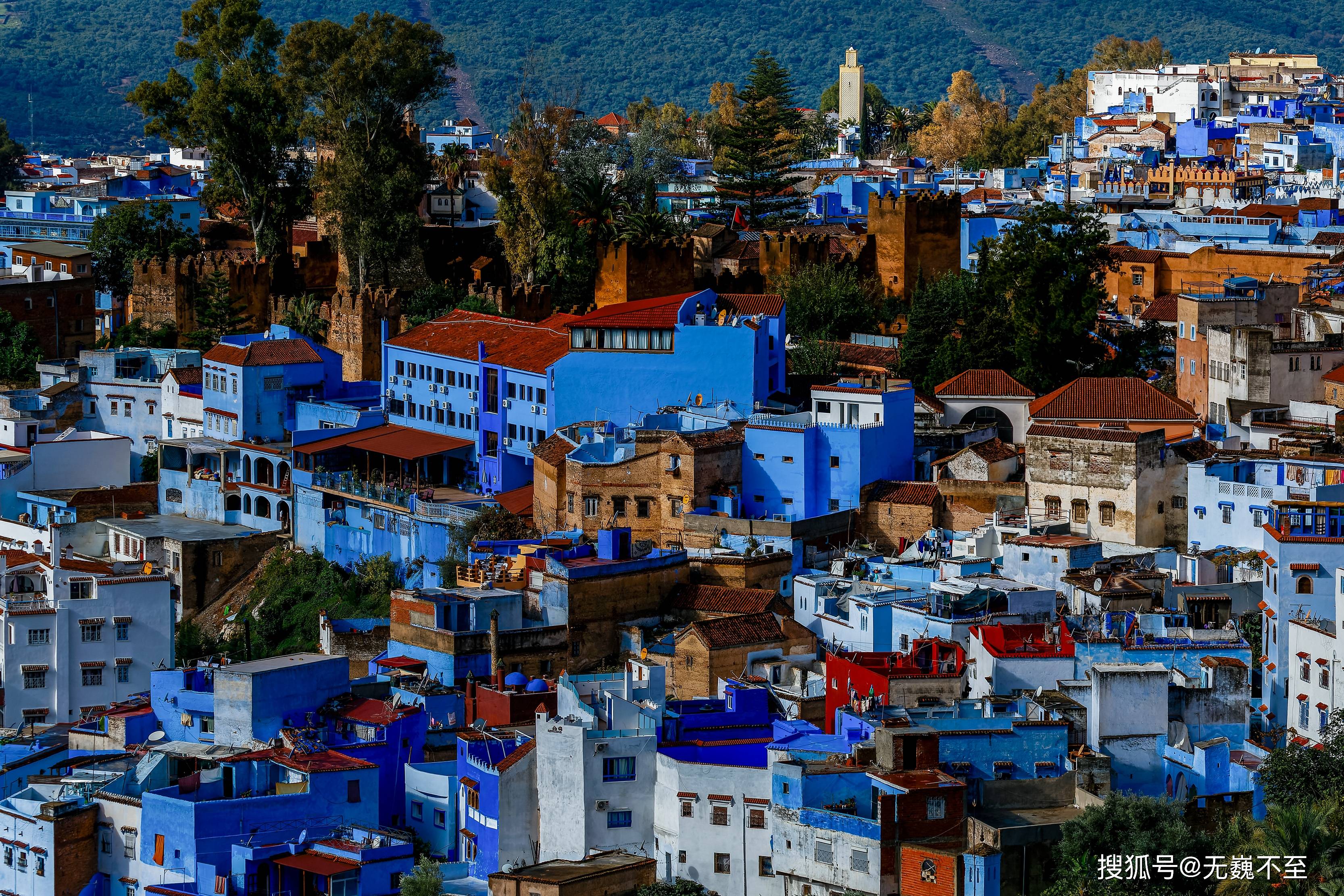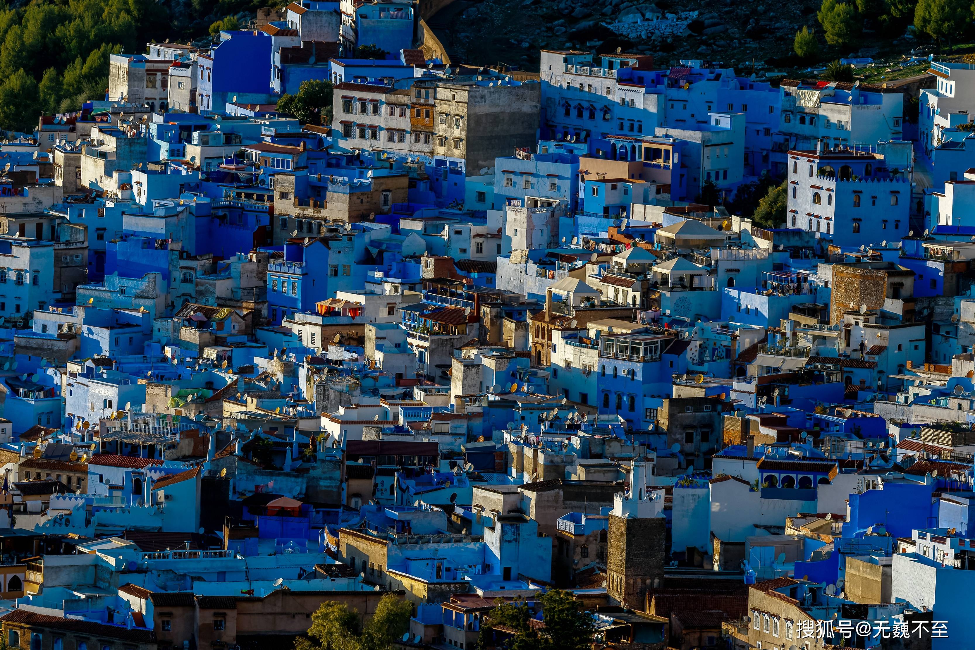 如同打翻的调色盘,各种蓝色洒满城市每一个角落。舍夫沙万,这个名字在柏柏尔语中意为“山羊角”,但世人更愿意称它为“蓝色珍珠”。当你第一眼投向这座山城,会瞬间被一种超越现实的感觉俘获——蓝色,不再是天空与海洋的专利,而是成为了大地的颜色,生活的底色,甚至时间的颜色。