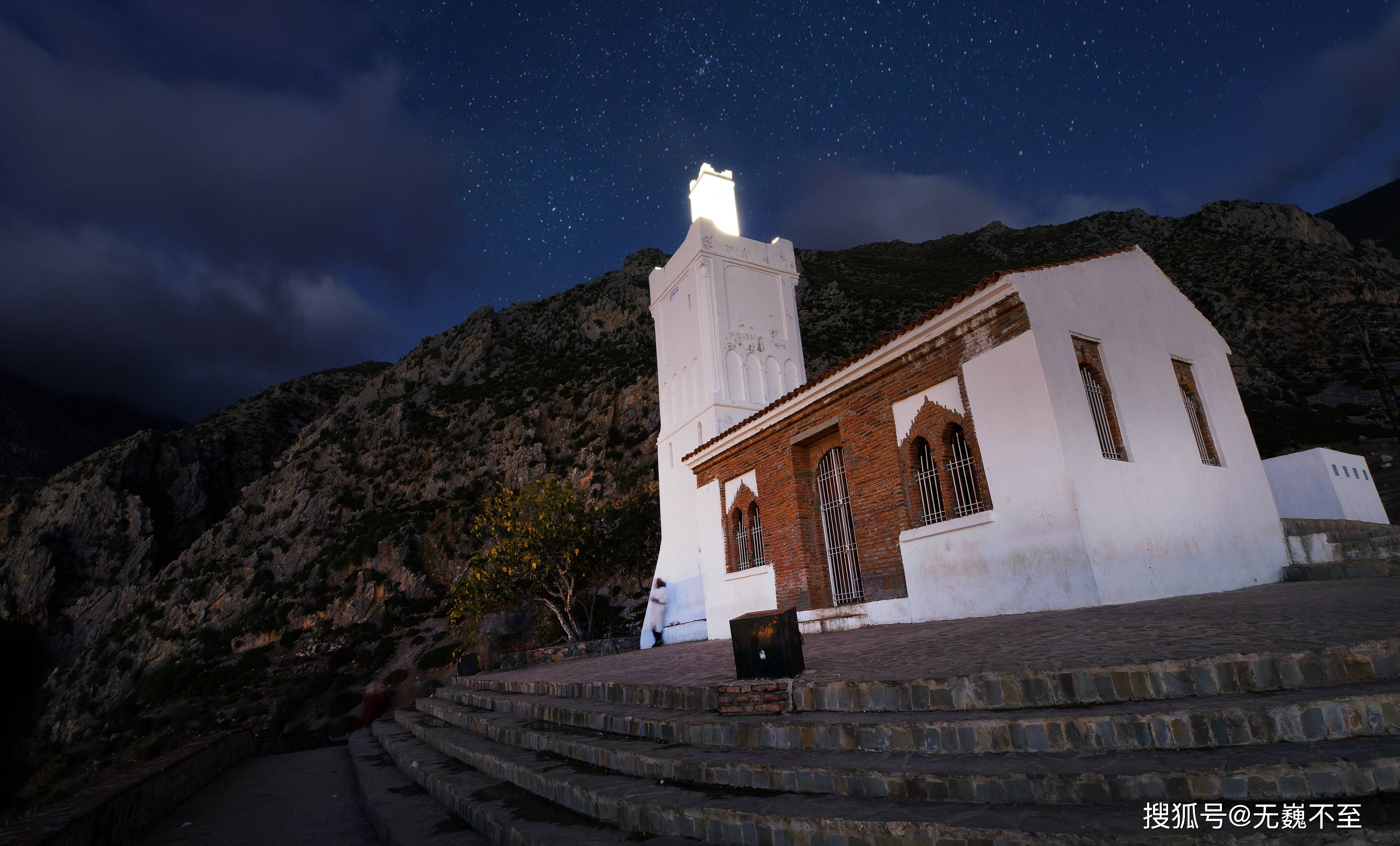 舍夫沙万夜晚的风很大,特别是荒僻的山头,观赏日落的游客早已三三两两下山了,而为了拍摄夜景,仍在山顶坚守的只剩我一人了,不远处的山谷传来一群似狼似犬的嚎叫和厮打声,汗毛顿时树立,赶紧拍了一张清真寺的星空图收拾家伙走人,提着脚架防身,一路小跑回酒店,才发现汗已湿透衣襟!噢,舍夫沙万,我那可爱迷人又难以忘怀的蓝色小城!