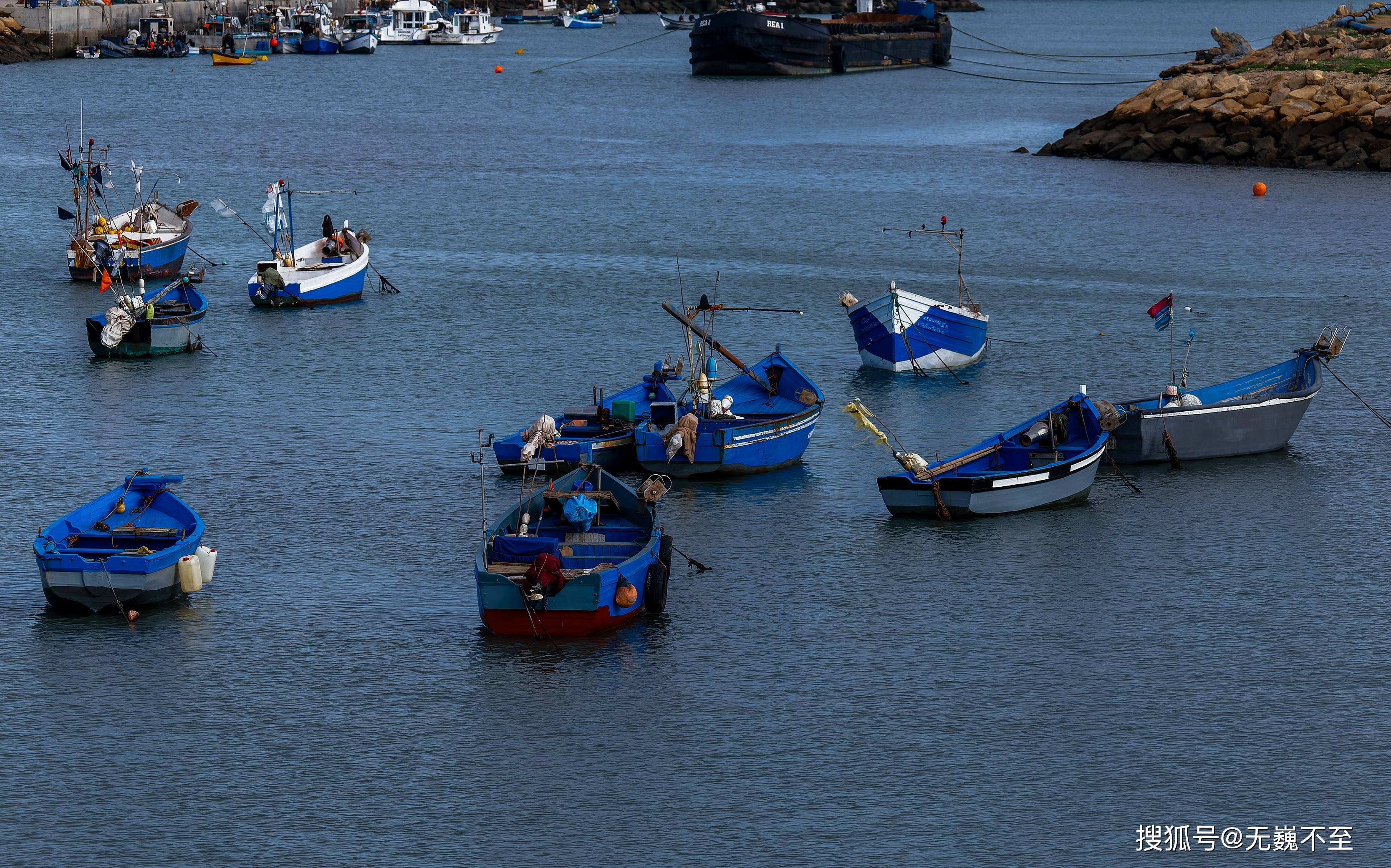 顺着环绕渔港的公路走到防波堤的尽头,小心翼翼攀爬上堤坝回望,海边是一牙星月形的金色沙滩,土黄的城堡围墙之上是一溜白蓝相间、高低错落的民居,丫字形混凝块筑成的防波堤将汹涌的大西洋与渔港隔开,那代表纯净和圣洁的蓝与白在天地间是如此美妙和美好!