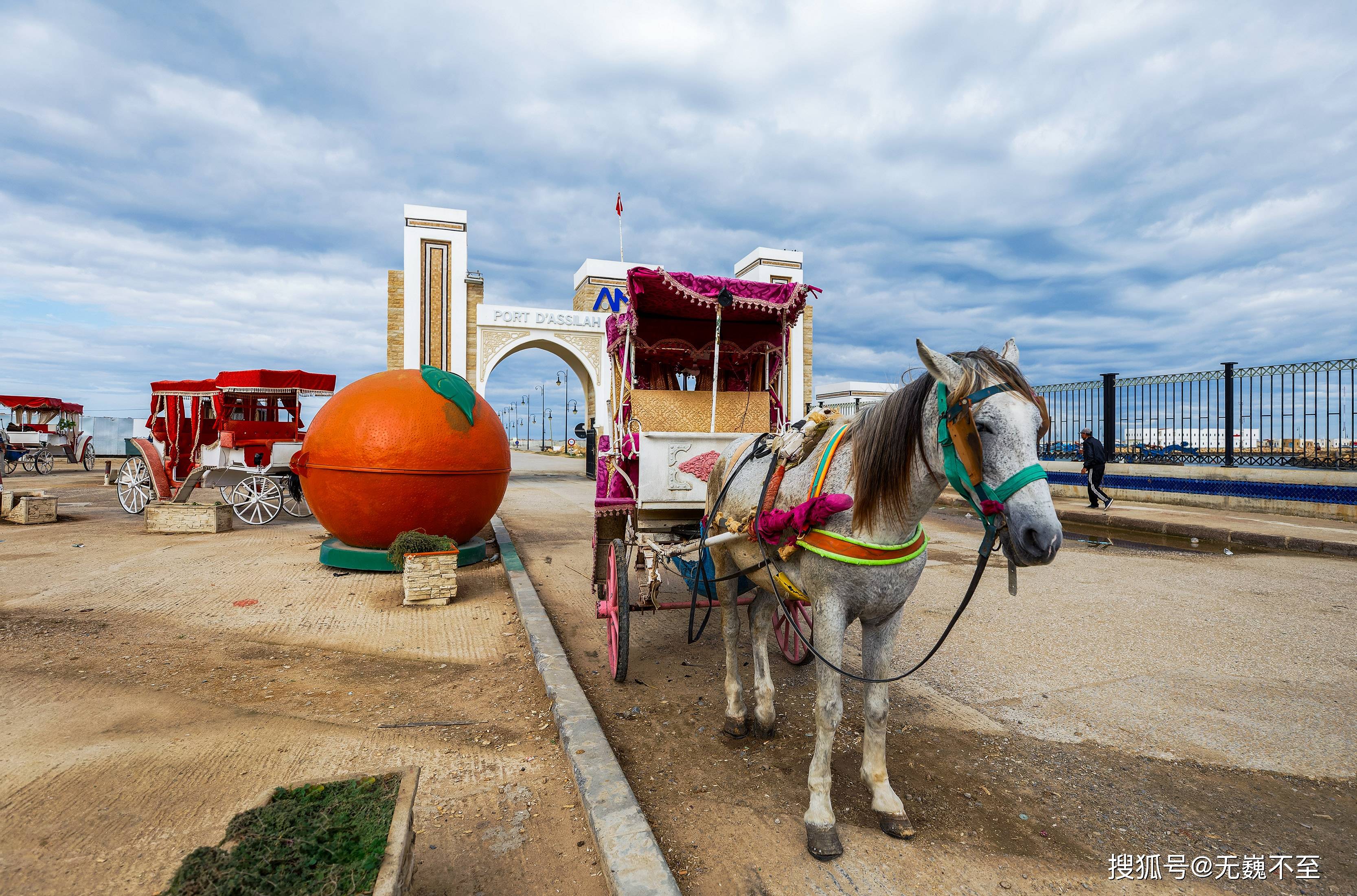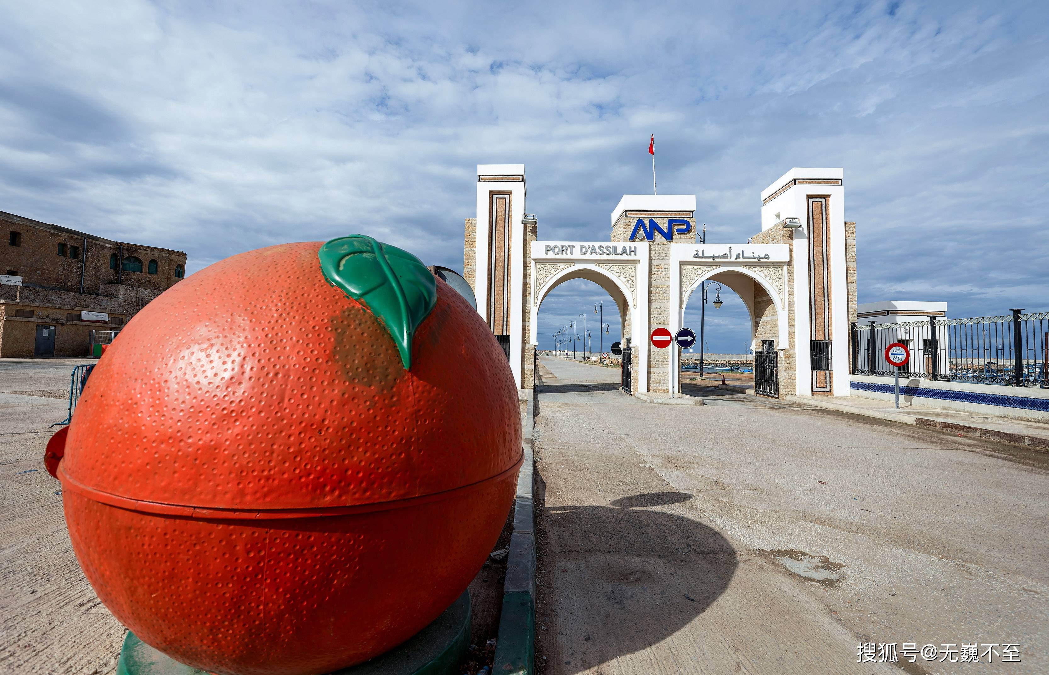 摩洛哥所有的古城都不允许汽车行驶,旅游大巴只能在这停泊海滨广场,旁边有个橘子雕塑,表明艾西拉盛产柑橘。