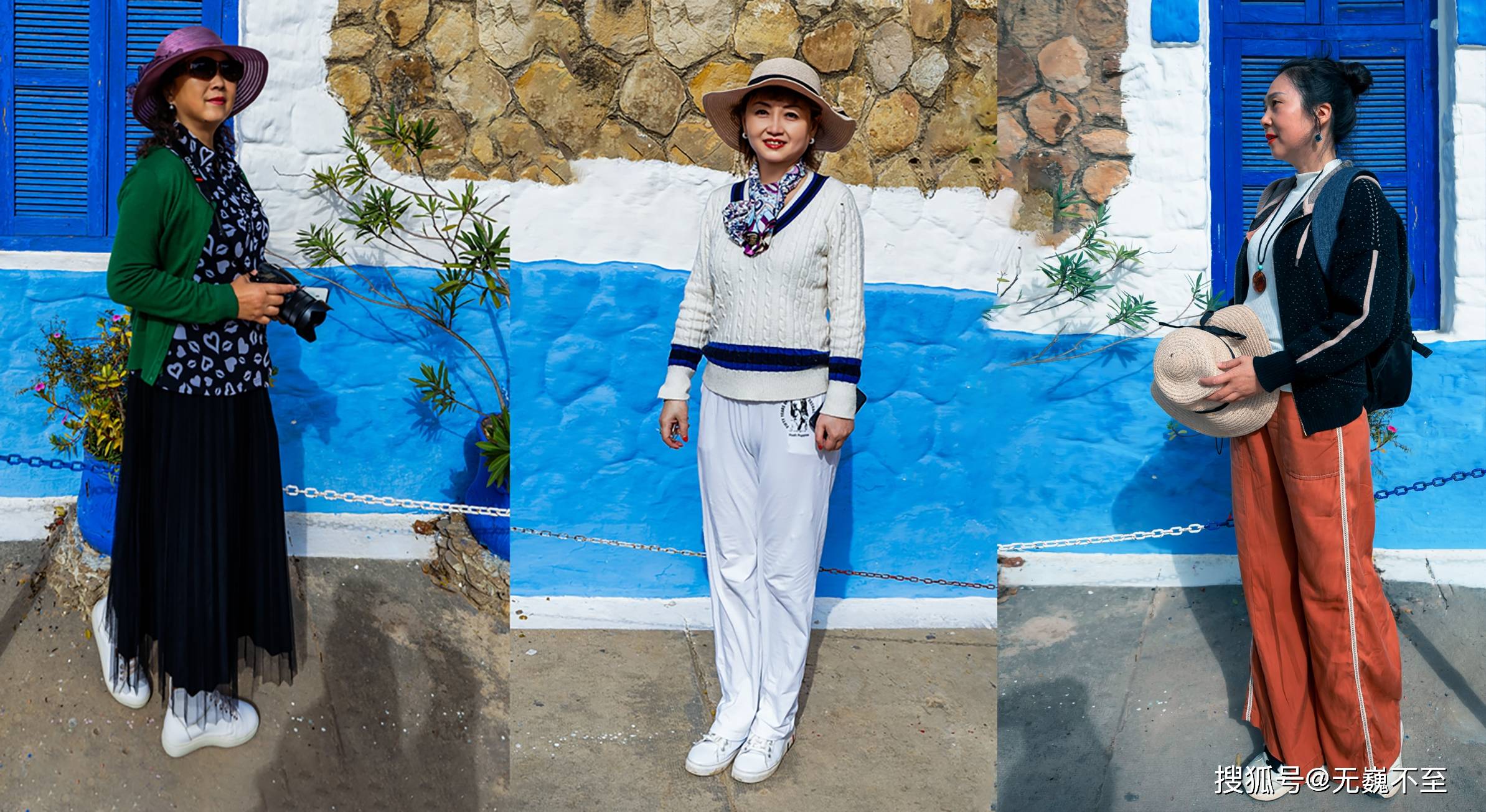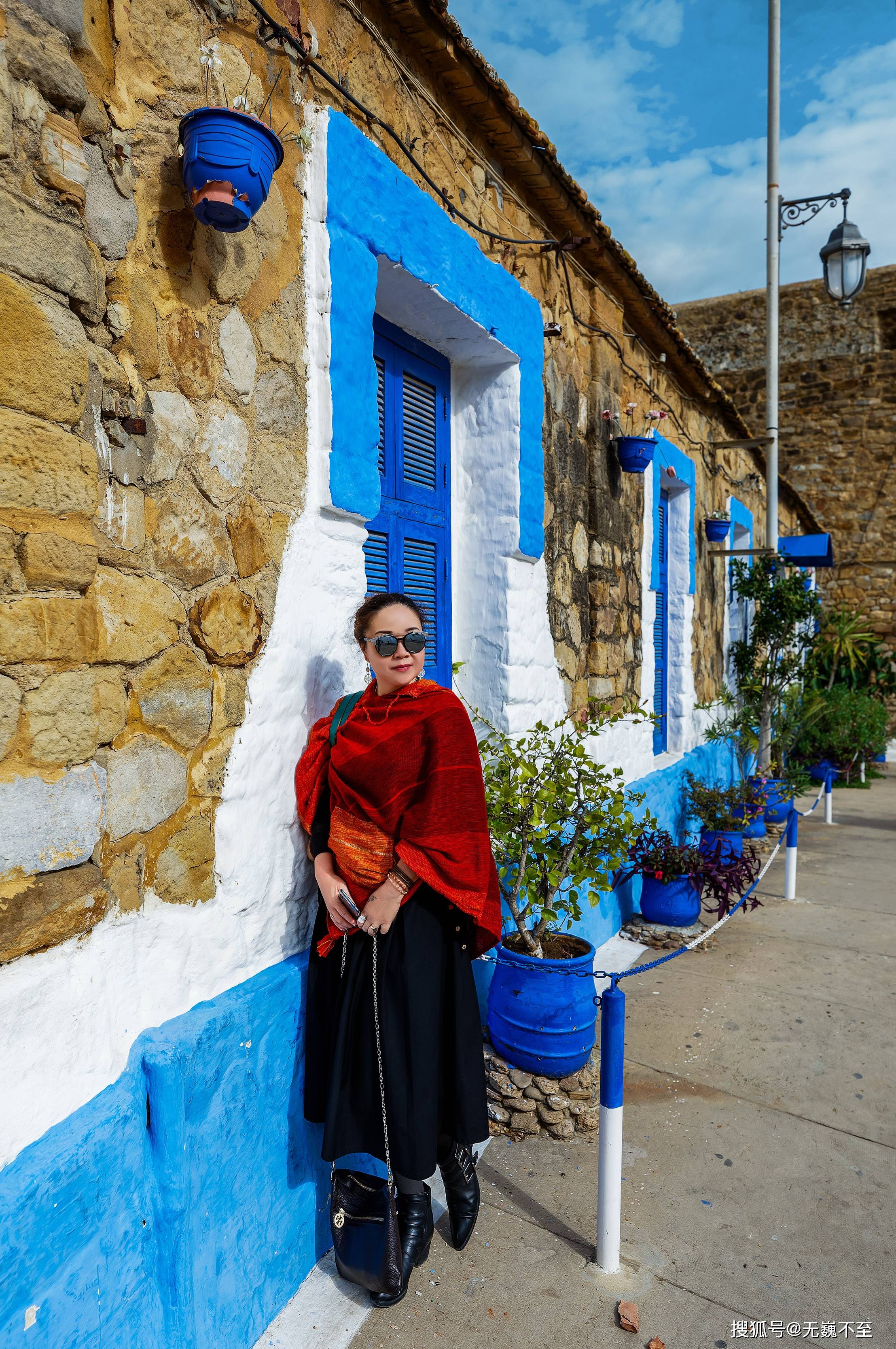 站在防波堤尽头回望,金色的沙滩之上是一圈土黄的城堡墙基,再上面是一溜白蓝相间、高低错落的民居,惊涛拍岸,流云飞转,你便能真切感受到纯净和圣洁的蓝白在天地间是多么的美好!