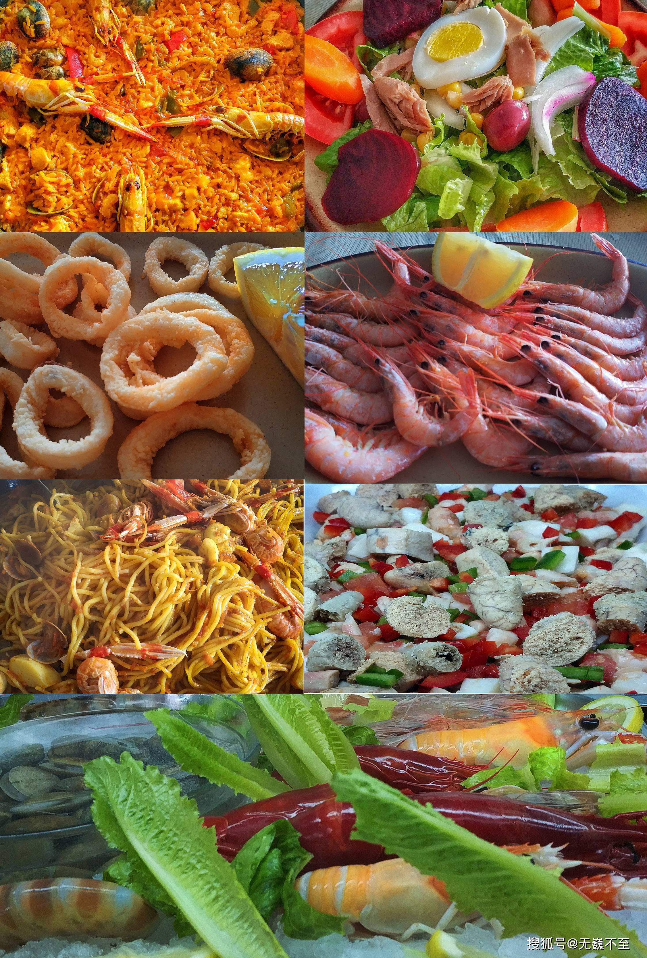 西班牙餐最大特点就是用生猛海鲜糅合水果与鲜花的芳香,同时采用洋葱、番茄、生菜、紫薯、胡萝卜等时令蔬菜,再加上黑橄榄、胡椒、香料、鸡肉、鱼虾贝类,最后浇上橄榄油和撒一把切碎的罗勒香菜,并来上一盘水果沙拉。