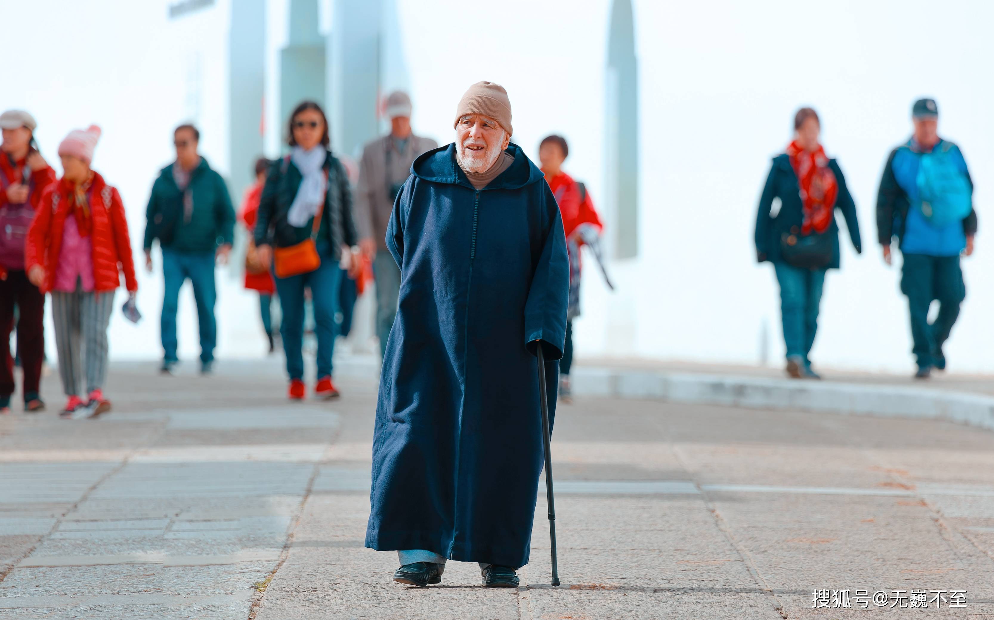 身着蓝色吉拉巴,拄杖而行的老人,在身后的大批游客衬托下,有木有一种摩洛哥老发哥的风范和气势?