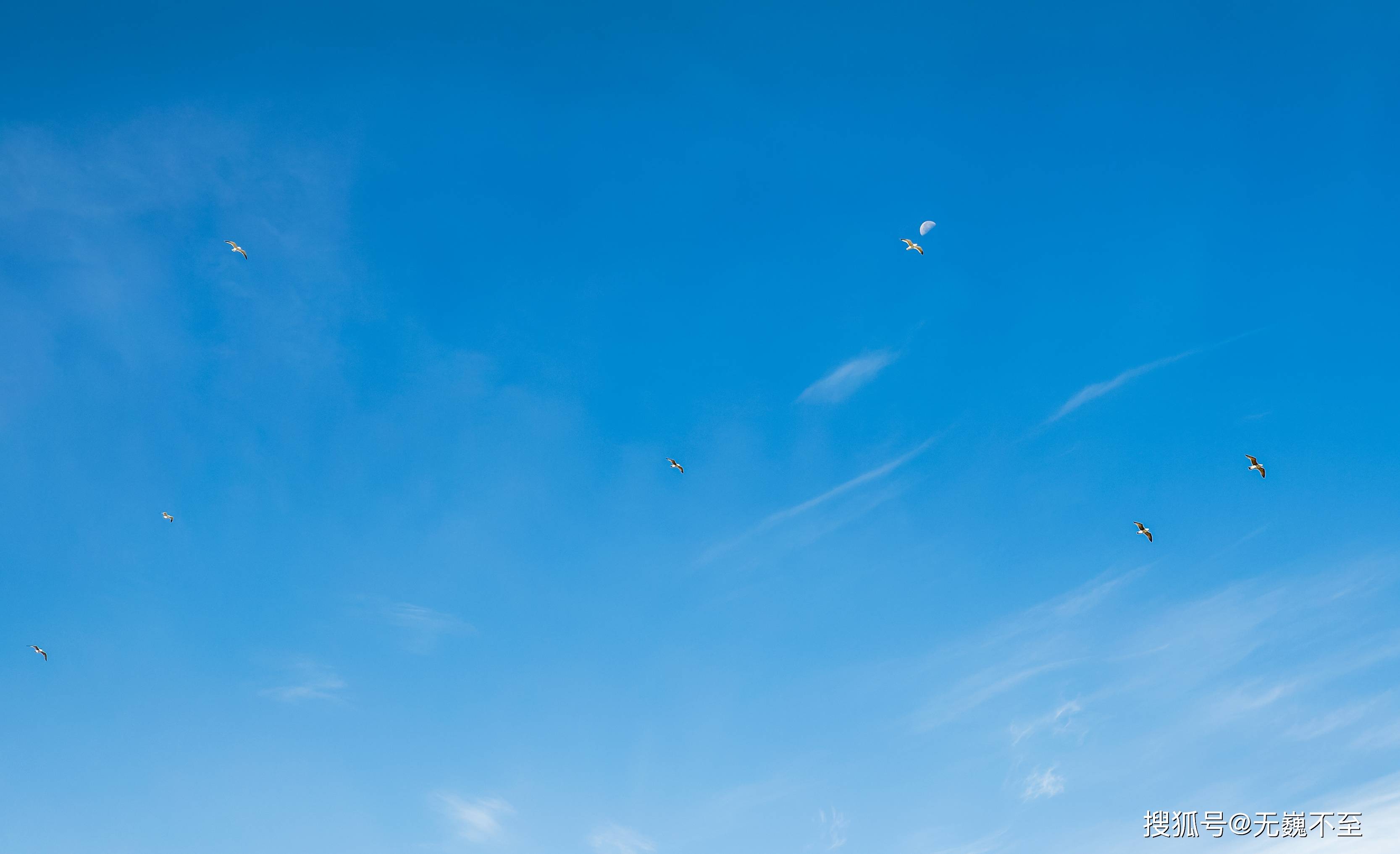 聒噪的叫声传入车窗,抬头,一群海鸥疾速掠过苍穹,举起相机咔嚓几张,就有了这群鸟伴月的奇观。