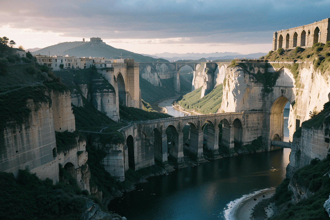 当我来到努埃沃桥边缘时,眼前的景象瞬间让心脏微微一震。那道深不见底的泰霍峡谷如一道天然鸿沟,从城市中央穿过,垂直的岩壁高耸,仿佛能直接通向地下世界。努埃沃桥横跨在两侧悬崖之间,桥体由巨石砌成,高耸如堡垒,仿佛一座坚固的守卫者。风从峡谷底部向上涌动,带着微凉与湿润,让人一脚踏上桥面就感到一种深沉的力量。