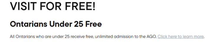 但是如果你是安省居民,25岁以下可全年免费参观AGO(请注意14-24岁需提前网上注册免费年票才可免费参观)