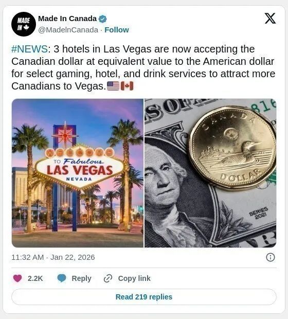 为吸引加拿大游客,现在,拉斯维加斯的三家酒店开始接受加元,并按等值美金的汇率提供部分博彩、酒店及饮品服务。