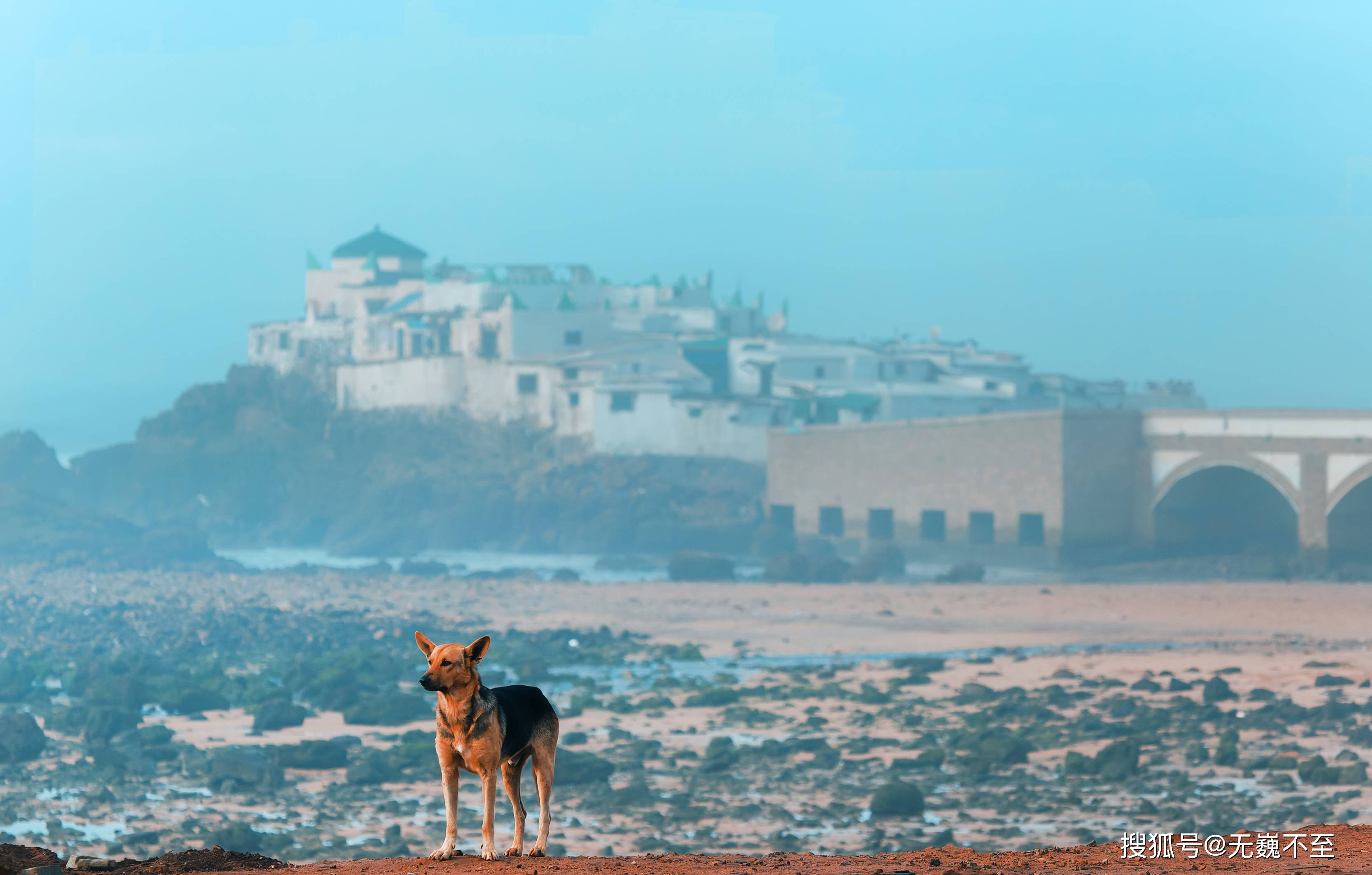 行不多远,就可见到退潮的海滩上有一座石桥连接着一个由礁石为基础建成的小城堡,白墙绿顶,古意苍然,一只瘦骨嶙峋的流浪狗凝神不动,可那眼神和气质,依然留存着狼一般的孤傲!