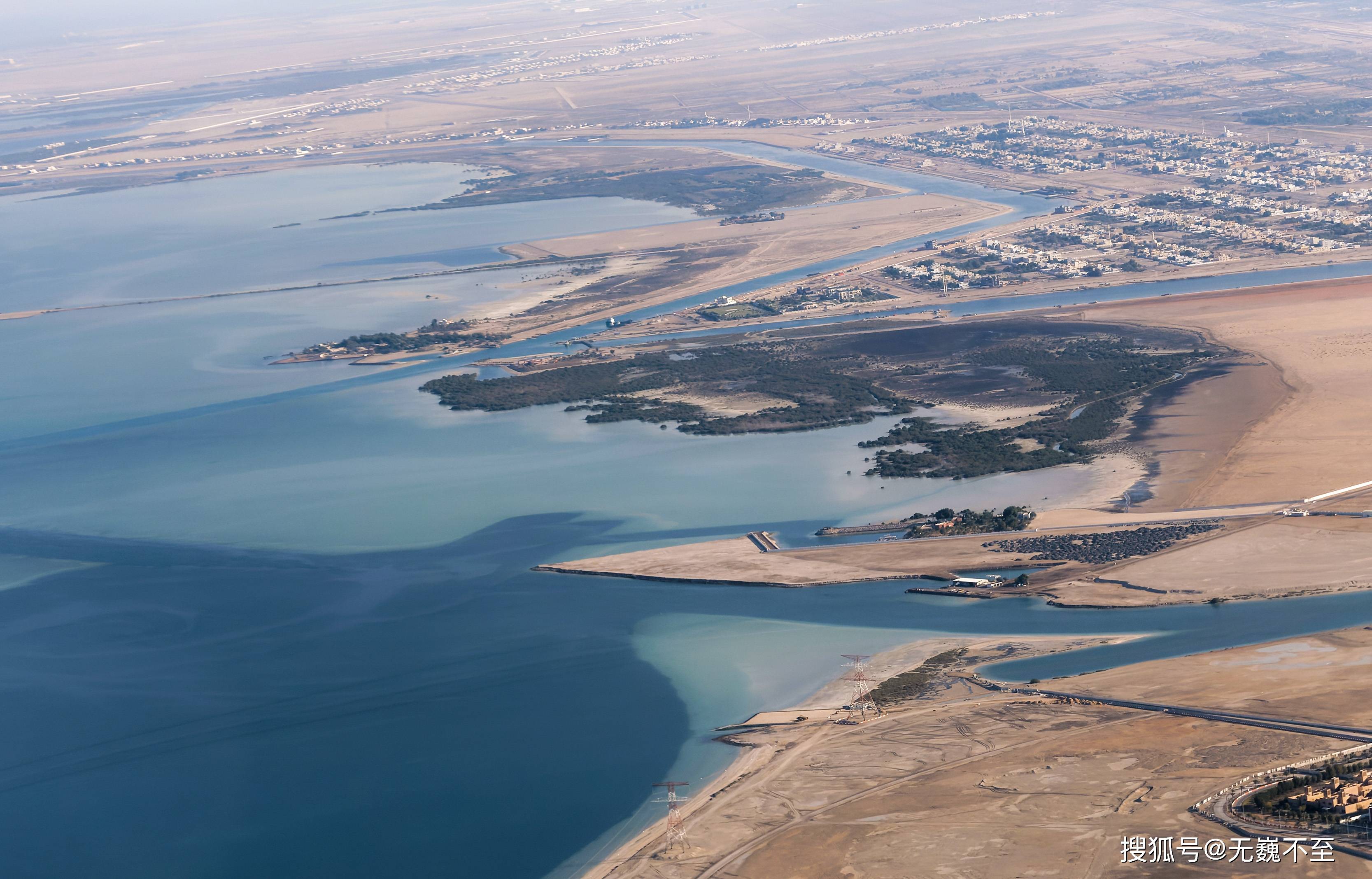 透过舷窗,波斯湾变成了一块深蓝色画布,港湾、航道和公路在大地划出道道直线。然后是一片土黄色的阿拉伯沙漠,褶皱如古老皮肤的沙丘延伸至地平线。浩瀚沙漠的金黄,与波斯湾深邃的蓝,在此形成最尖锐又最和谐的对峙。