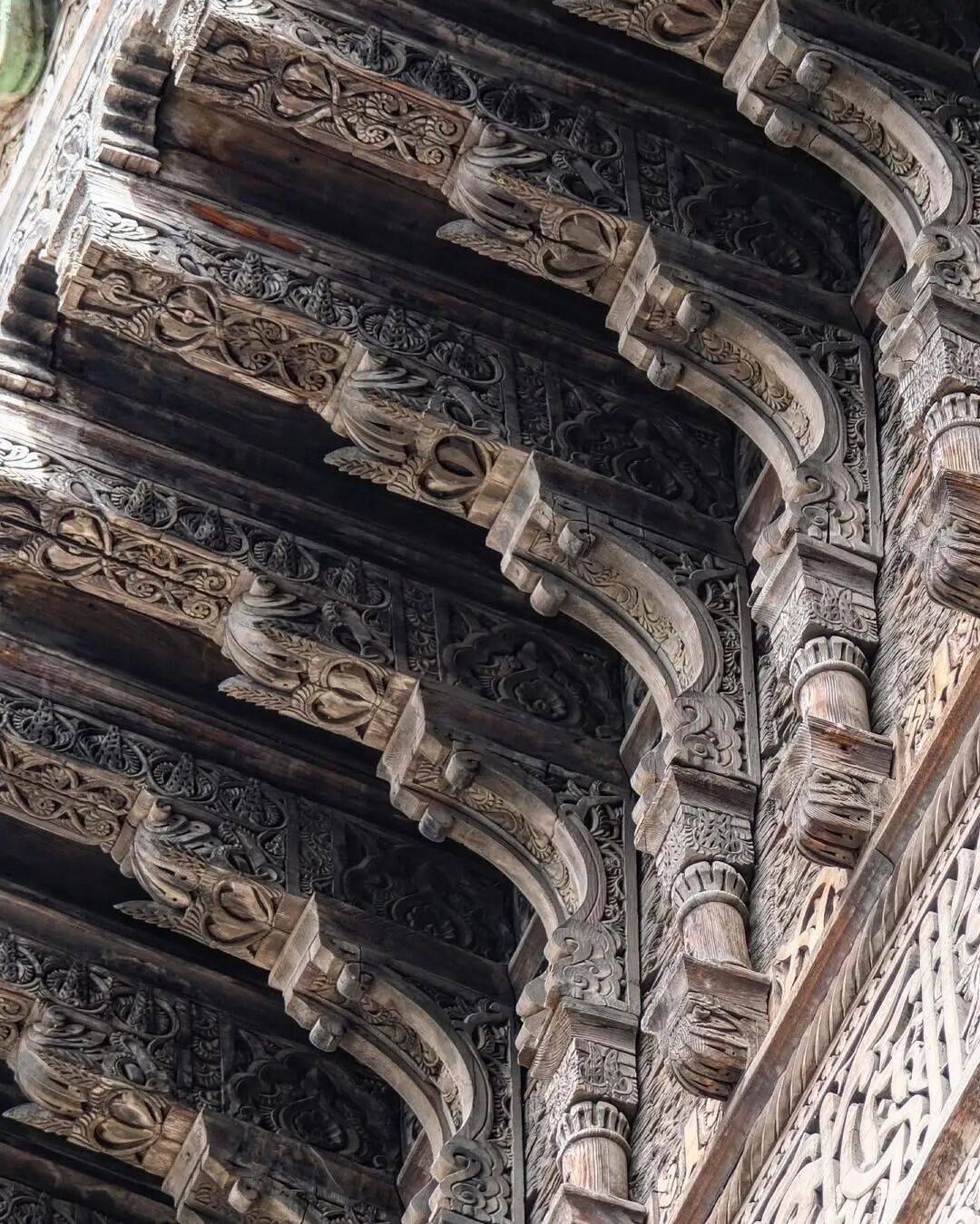 第一件是雪松木雕,特别是入口门厅的蜂窝状拱顶,雕得密密麻麻,却不杂乱,堪称木工奇迹。