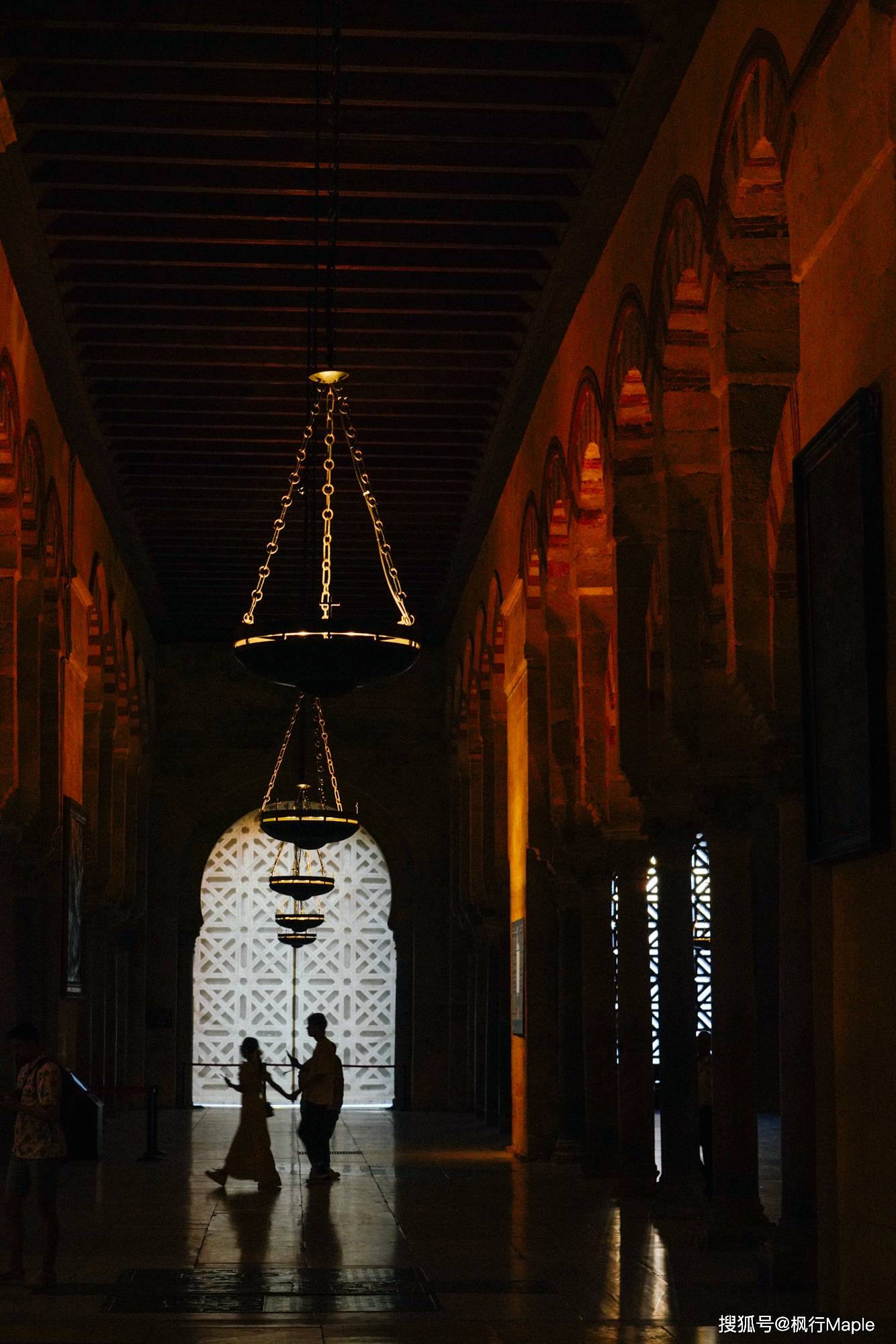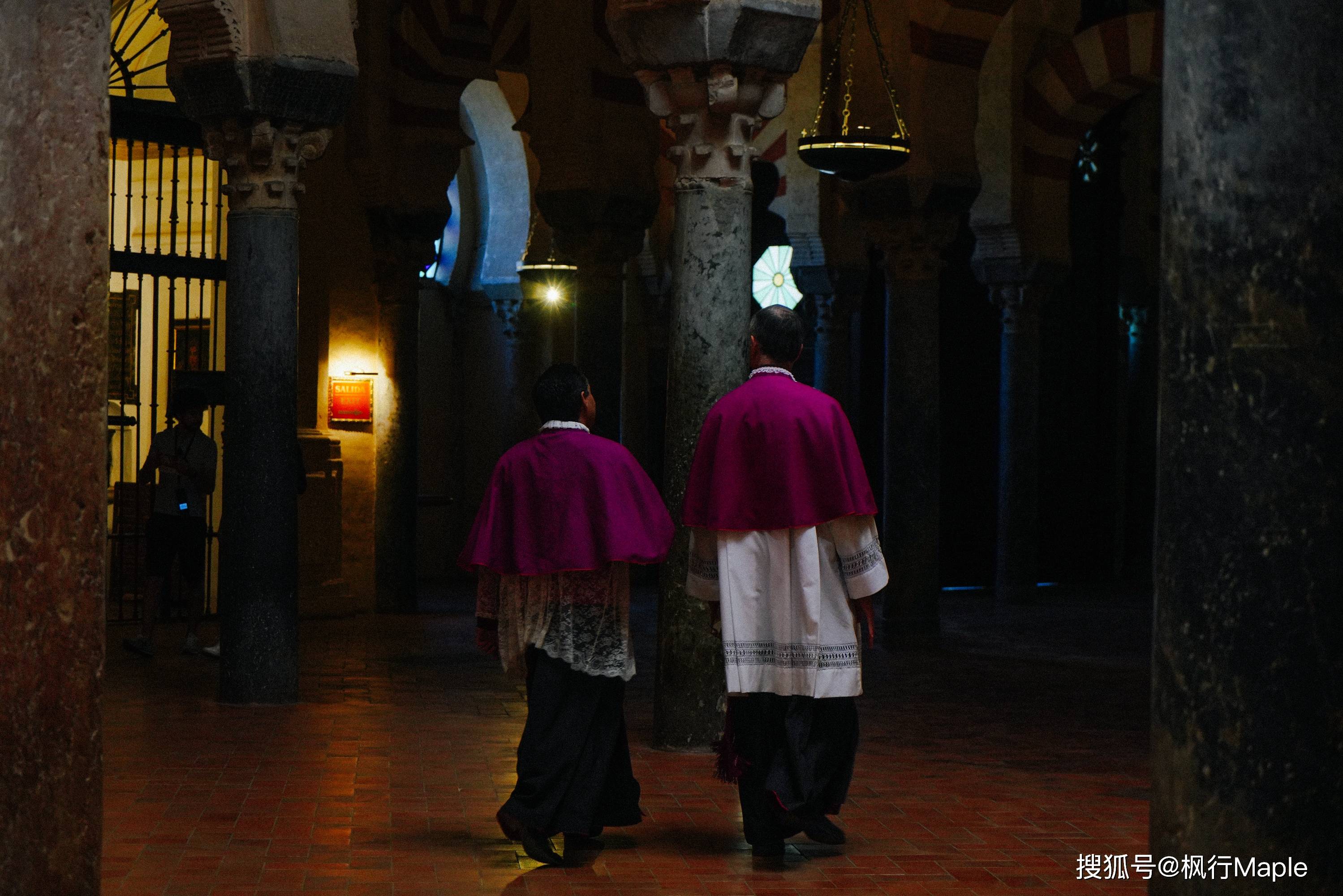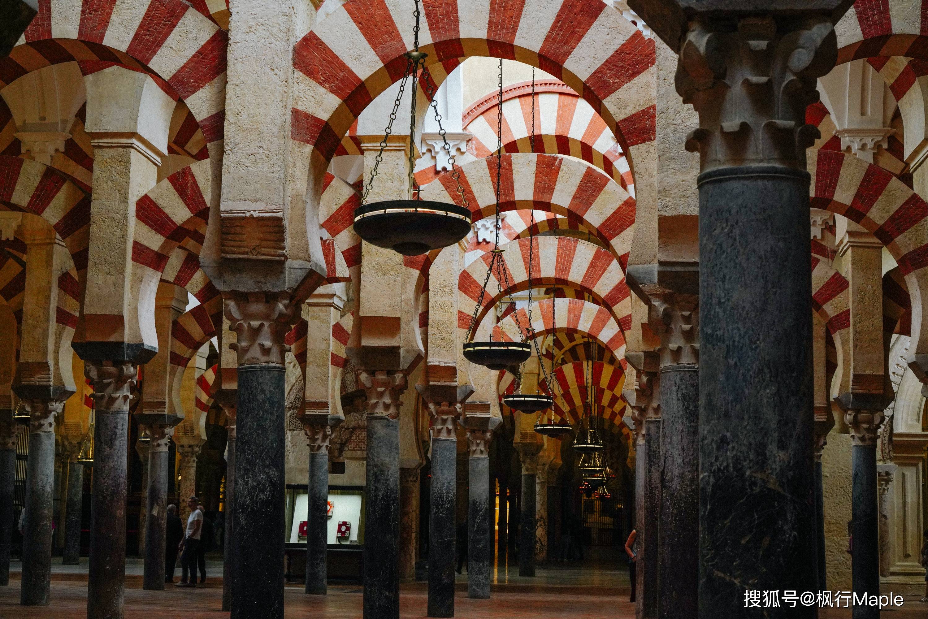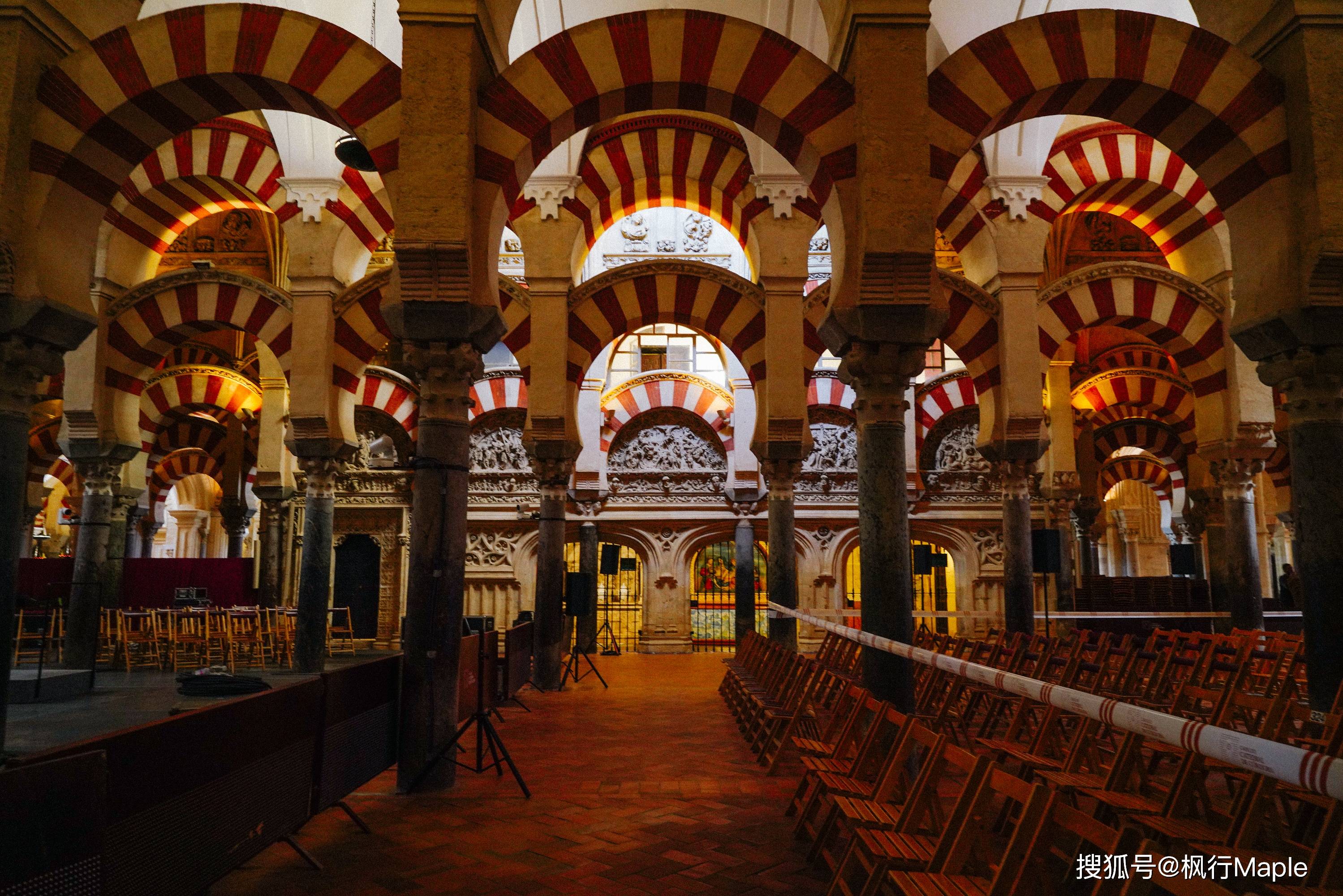与西班牙普遍宽阔结构的天主堂不一样,850根巨大的石柱托起红自相间的双层马蹄形拱门,而这层层如海浪的拱门给人一种空间无限延伸的韵律感,也增强了教徒们在祈祷时油然产生的一种神秘感。