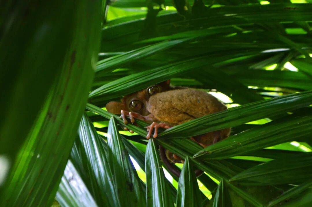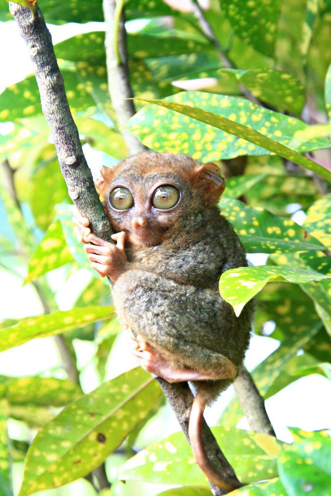 迷你眼镜猴,世界一级保护动物。看看这个瞪着大眼睛,躲在树叶中,被发现后竖起小耳朵,使劲表达“你们是谁?我很萌很无辜”的小可爱。 只要你不开闪光灯,避免伤害萌萌哒但脆弱的眼睛,眼镜猴还是很欢迎你的。