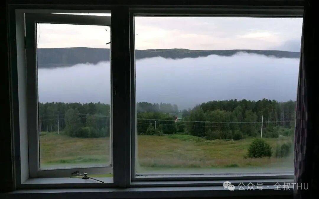 第二天晨起准备出门去跑步,突然发现,湖面不见了。窗中云影万千变幻,水木清华的对联里描绘的景色,在这里浮现。跑到湖边,又看见了梦幻仙境般的,白云绿树倒映湖水中的美景。