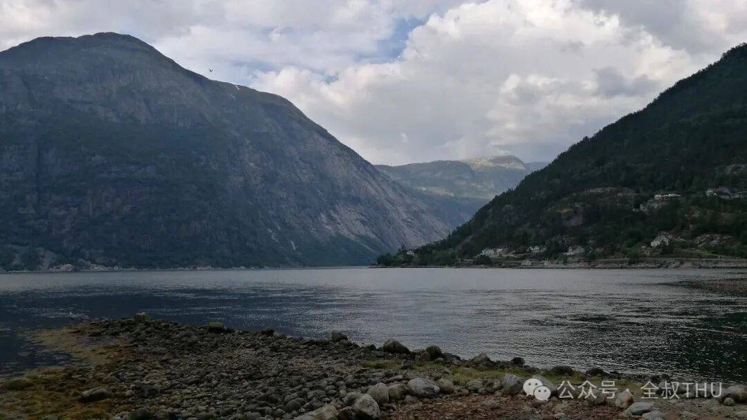 就这样走走停停看看,傍晚五点半,到达哈当厄尔峡湾,淡水与咸水交汇之处,大自然切削得如同海上三峡一般。