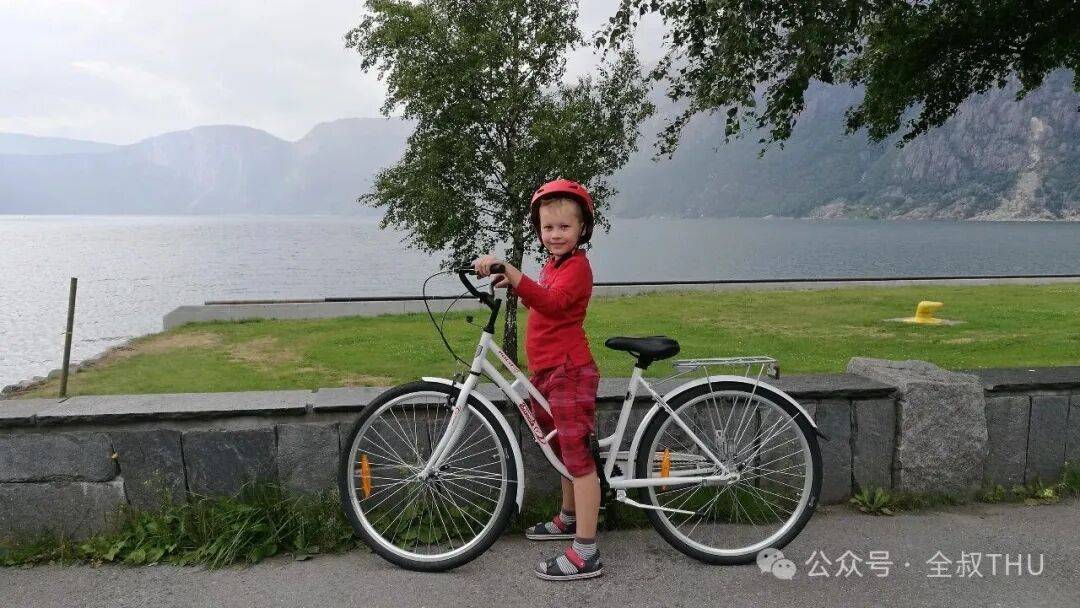 偶遇峡湾边,来景点骑车游玩的、酷酷的、萌萌的挪威红衣金发小女孩。十分理解,这个寒冷国度的人们,特别喜欢红色。