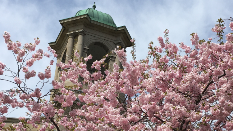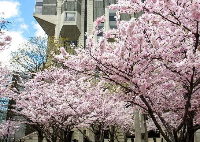 70棵樱花树沿Huron Street和Harbord Street种植,建筑与花树相映成趣。