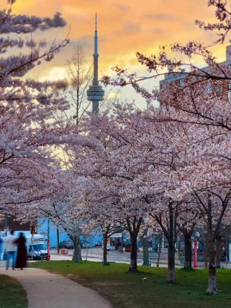必去,但要选对时间。超过2000棵樱花树,以淡粉色染井吉野樱为主,是1959年东京市民赠送给多伦多的礼物。