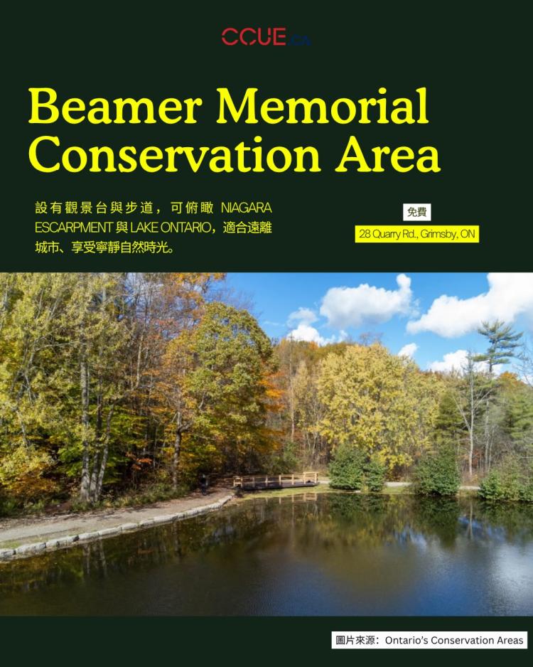 想远离市区喧嚣的游客,可选择Beamer Memorial Conservation Area,该地设有观景台,可俯瞰安大略湖及尼亚加拉断崖(Niagara Escarpment)壮丽景致。