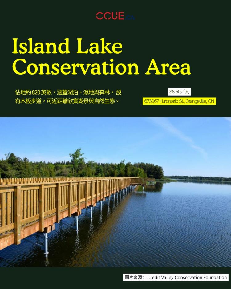 此外,Island Lake Conservation Area占地约 820 英亩,涵盖湖泊、湿地与森林,设有木板步道,可近距离欣赏湖景与自然生态。
