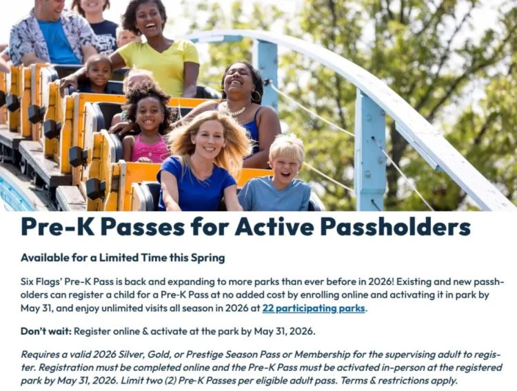 Six Flags Pre-K Pass(学龄前免费年卡)是Six Flags专门给学龄前儿童推出的福利年卡: